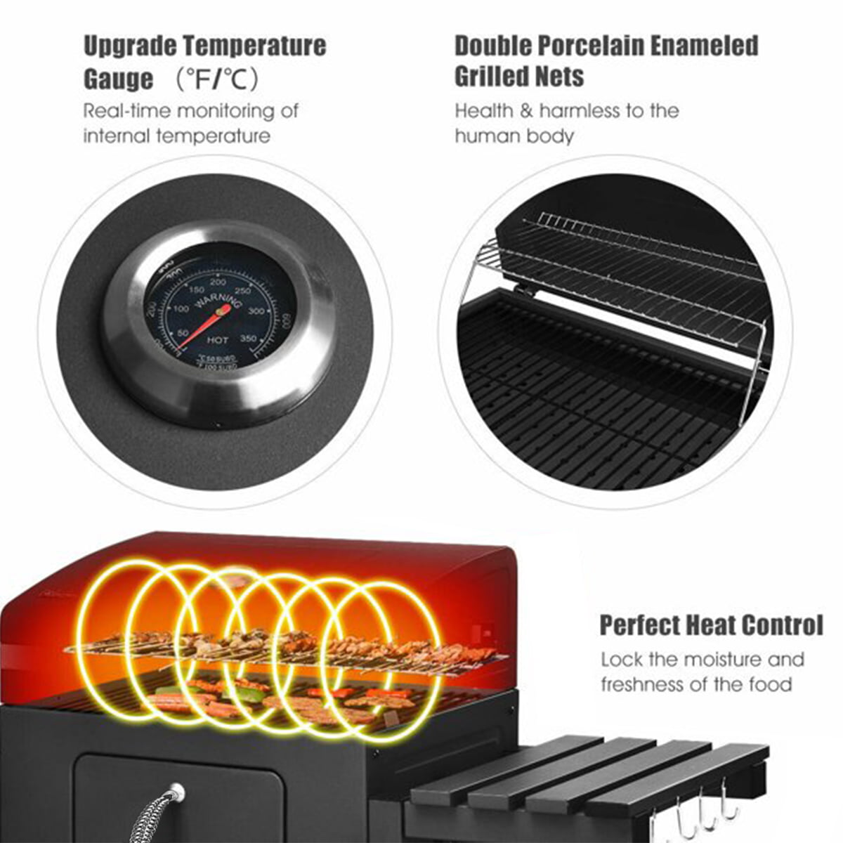 MF Studio 17″ Portable Kettle Charcoal Grill 2 in 1 BBQ Grill & Smoker
