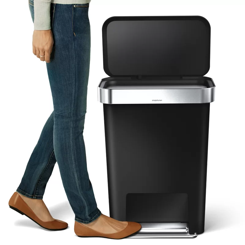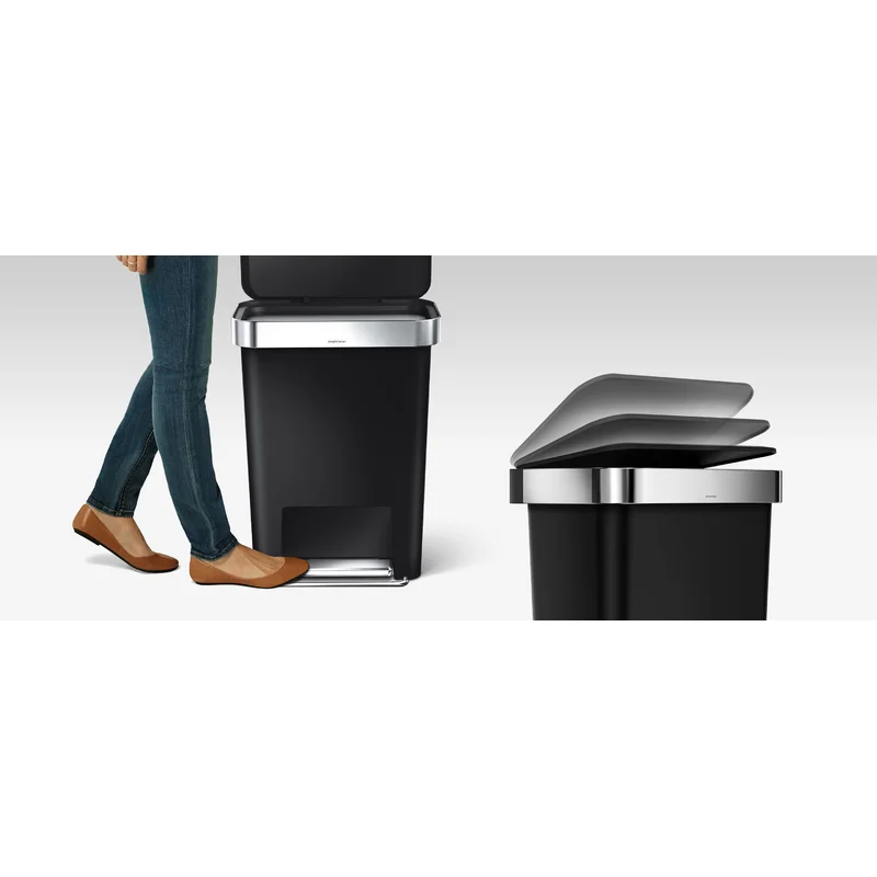 simplehuman 45 Liter / 12 Gallon Rectangular Kitchen Step Trash Can with Soft-Close Lid. Black Plastic