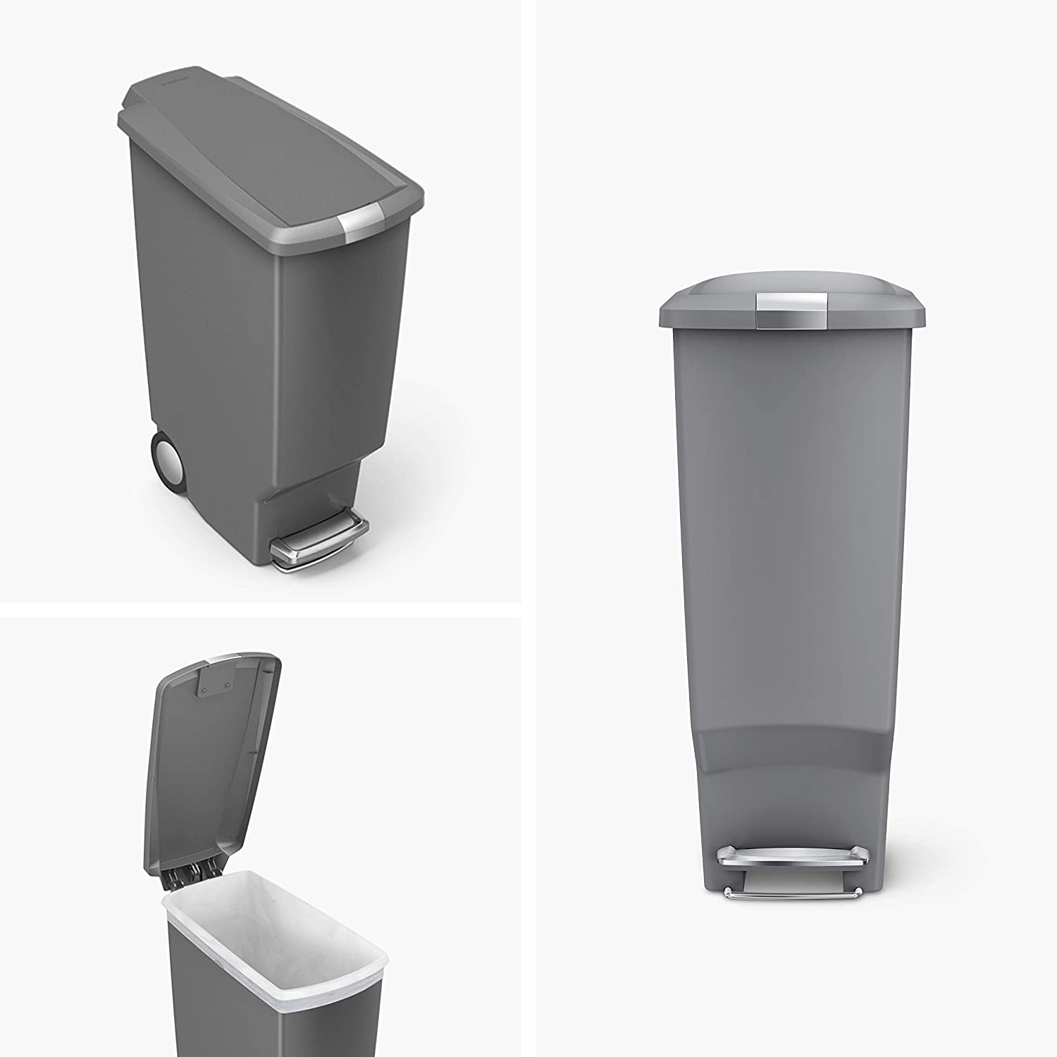 simplehuman 40 Liter / 10.6 Gallon Slim Kitchen Step Trash Can. Grey