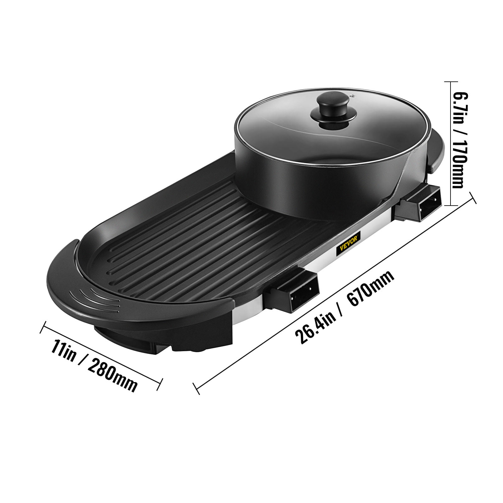 VEVOR 2 in 1 Electric Hot Pot and Grill. 2200W Separate Dual Temperature Control Electric Skillett. 5 Speed for Indoor Korean BBQ.Black