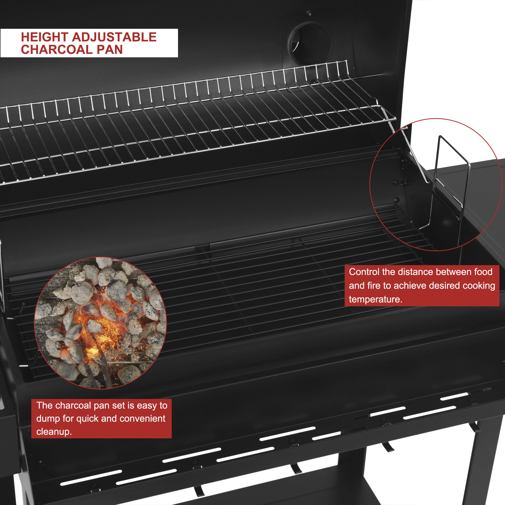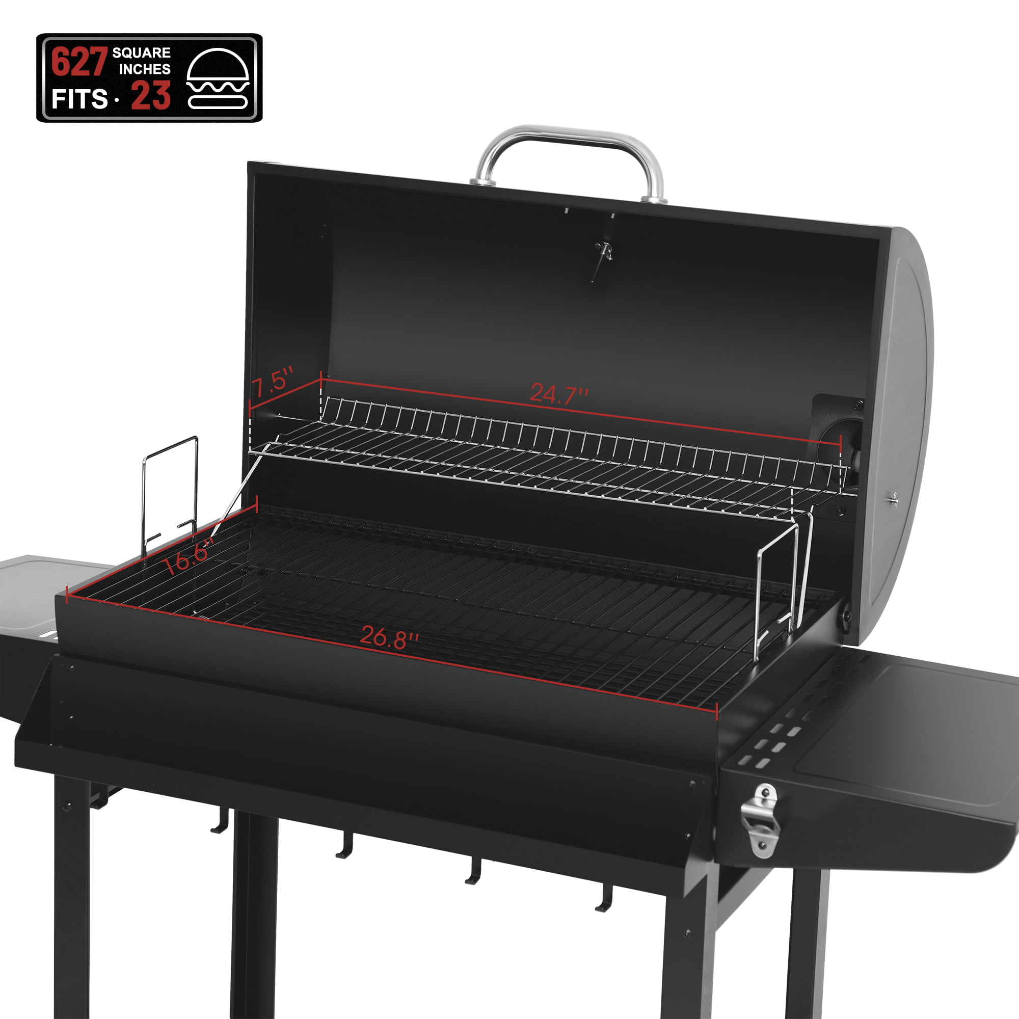 SUGIFT 24-inch Charcoal BBQ Grill with 2 Folding Side Shelves. Black