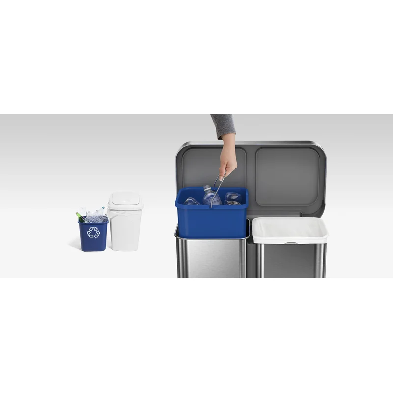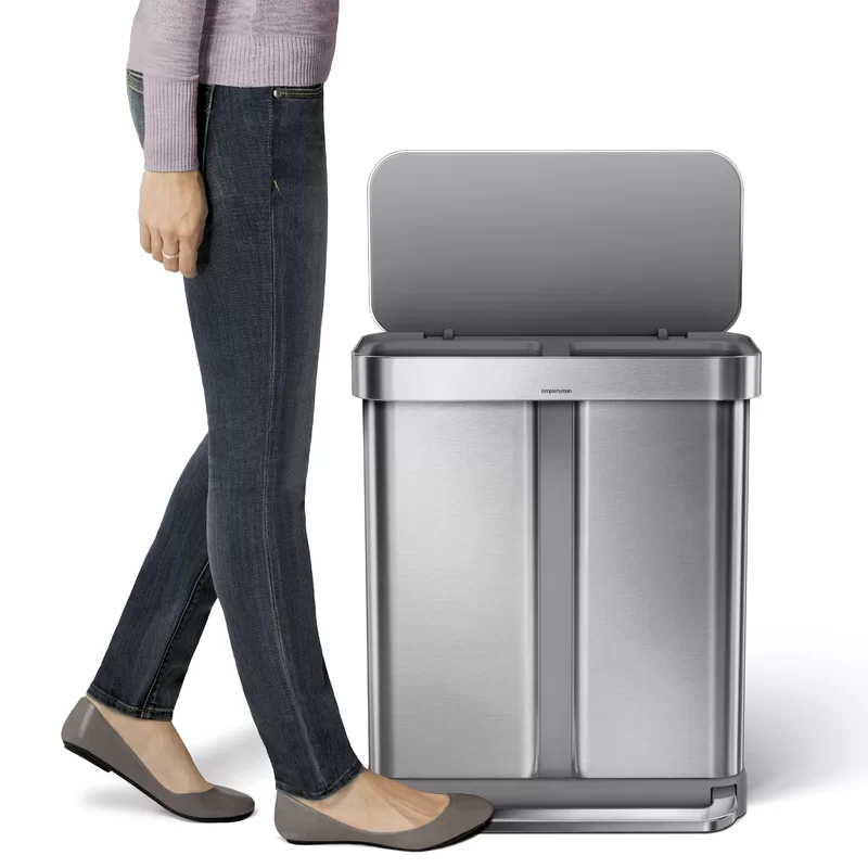 simplehuman 58 Liter / 15.3 Gallon Rectangular Hands-Free Dual Compartment Recycling Kitchen Step Trash Can with Soft-Close Lid. Brushed Stainless Steel
