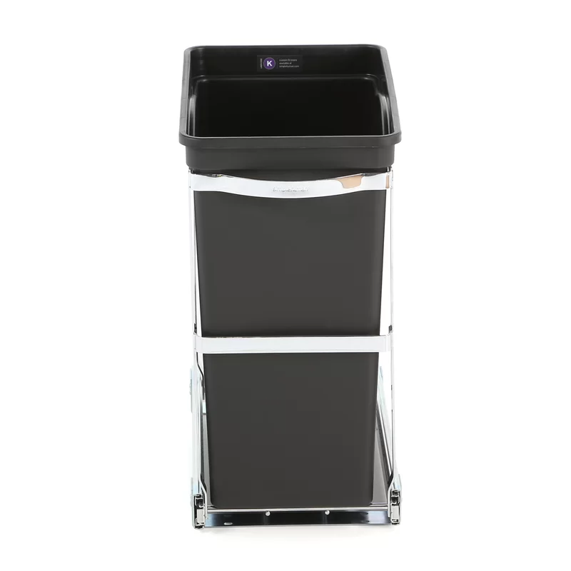 simplehuman 30 Liter / 8 Gallon Under Counter Kitchen Cabinet Pull-Out Trash Can. Heavy-Duty Steel Frame