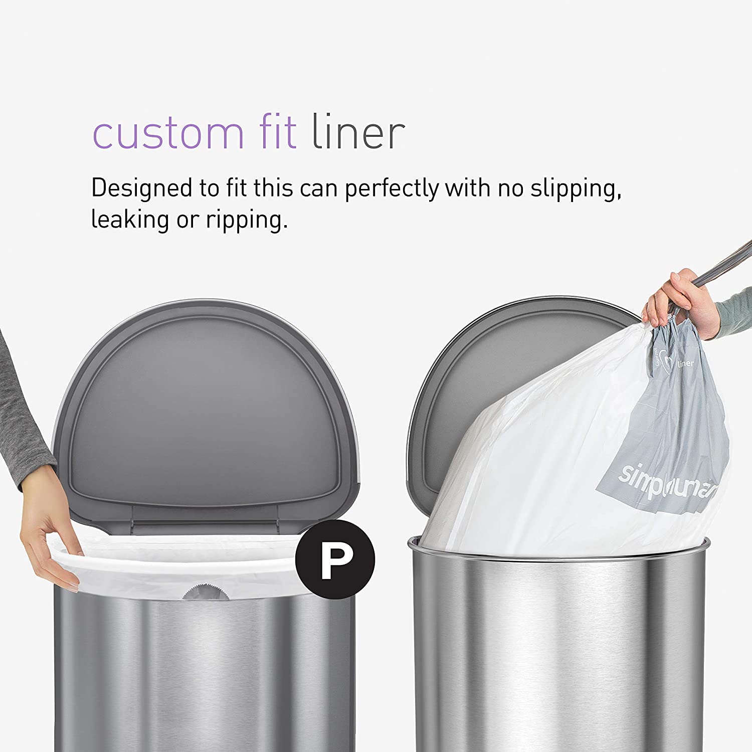 simplehuman 45 Liter/ 12 Gallon Semi-Round Hands-Free Step Trash Can. Brushed