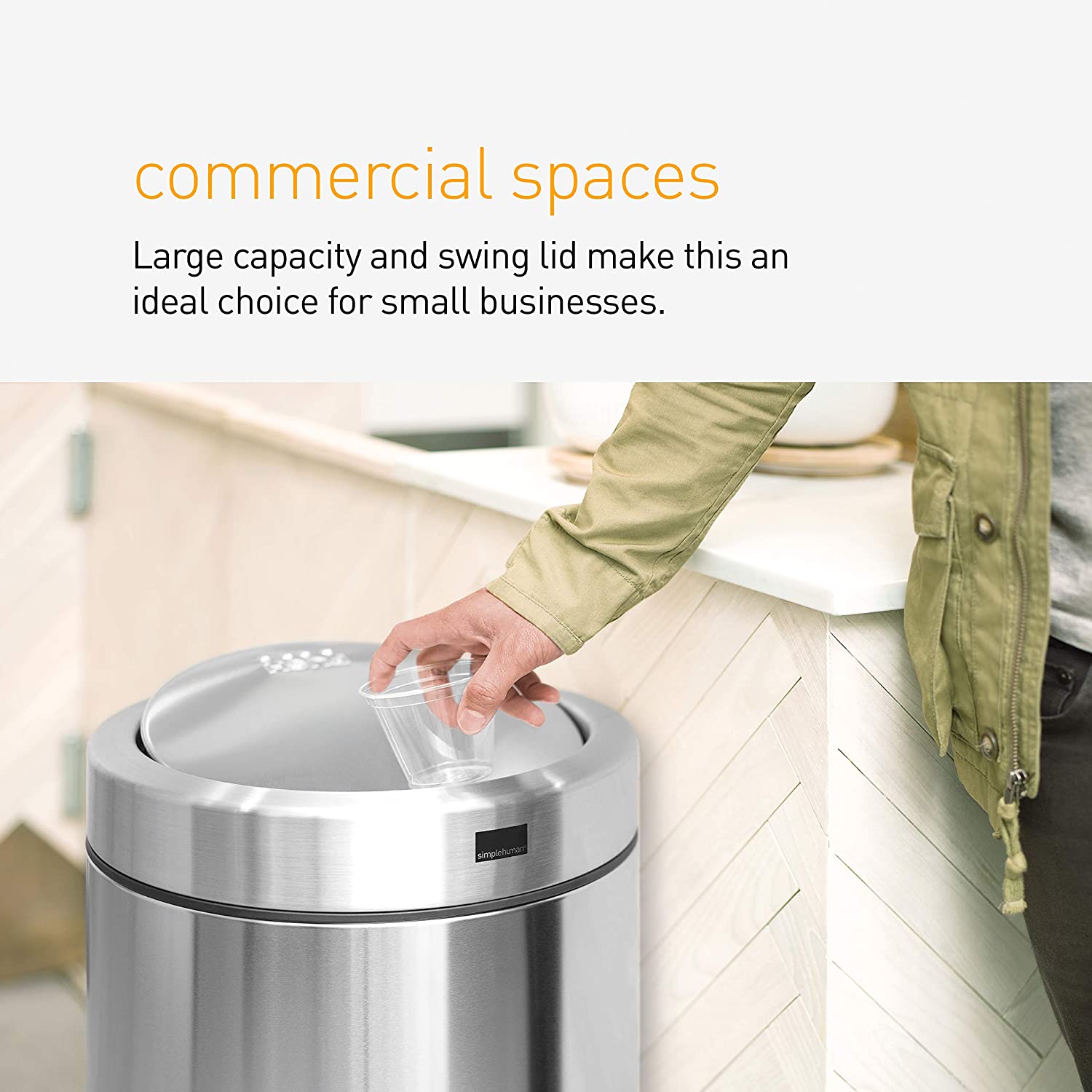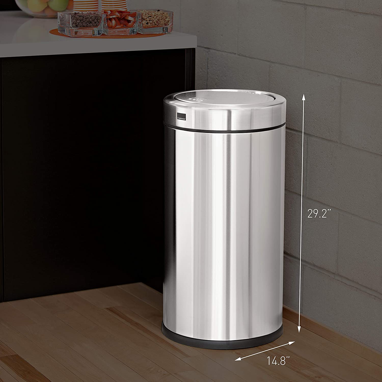 simplehuman 55 Liter / 14.5 Gallon Commercial Swing Top Trash Can. ADA-Compliant. 11-20 Gallons. Brushed Stainless Steel