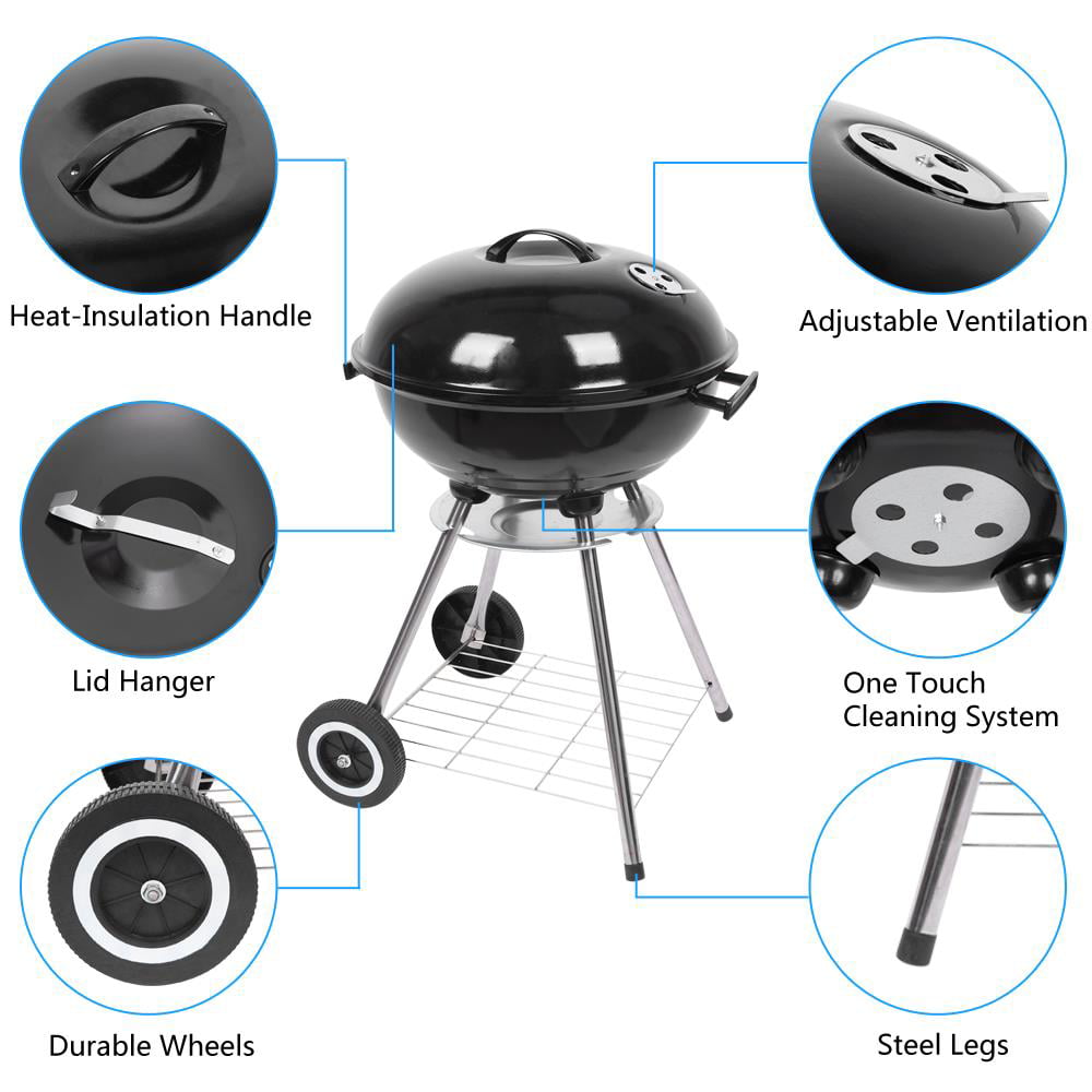 Zimtown 18″ Portable Charcoal BBQ Clearance Grill Outdoor Camping Backyard with Side Wheels Black