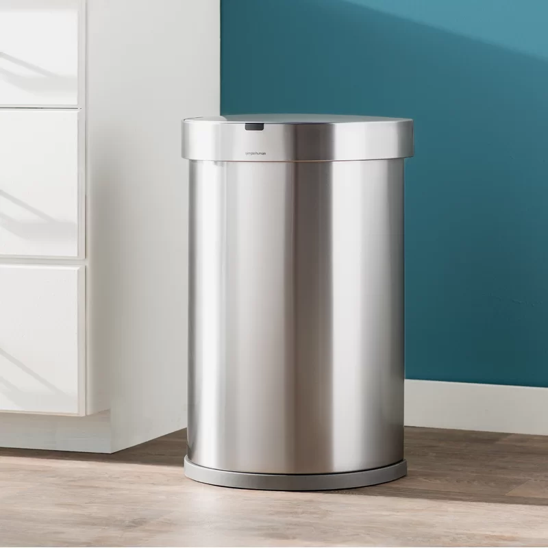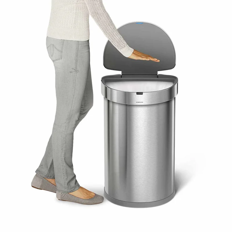 simplehuman 45 Liter / 12 Gallon Semi-Round Automatic Sensor Trash Can. Brushed Stainless Steel
