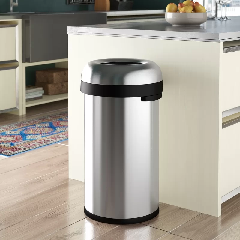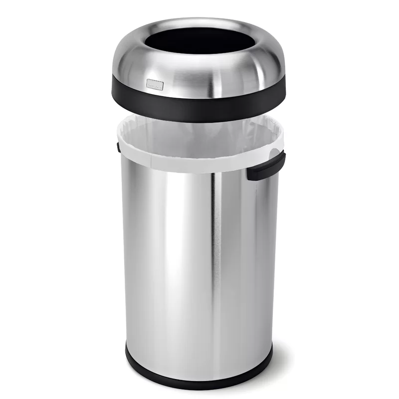 simplehuman 60 Liter / 16 Gallon Bullet Open Top Trash Can. Commercial Grade Heavy Gauge. Brushed Stainless Steel