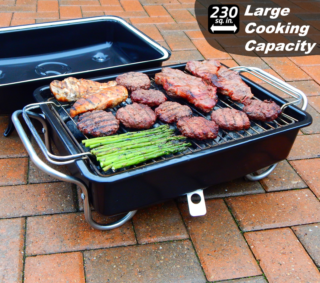 Raptor Grilling - Optimized Portable Charcoal Grill Smoker - Barbecue for Camping. Tailgating & Travel – Go Anywhere With This Tabletop Outdoor BBQ Cooker and Char-Grill. Broil. Smoke or Hibachi-BLACK