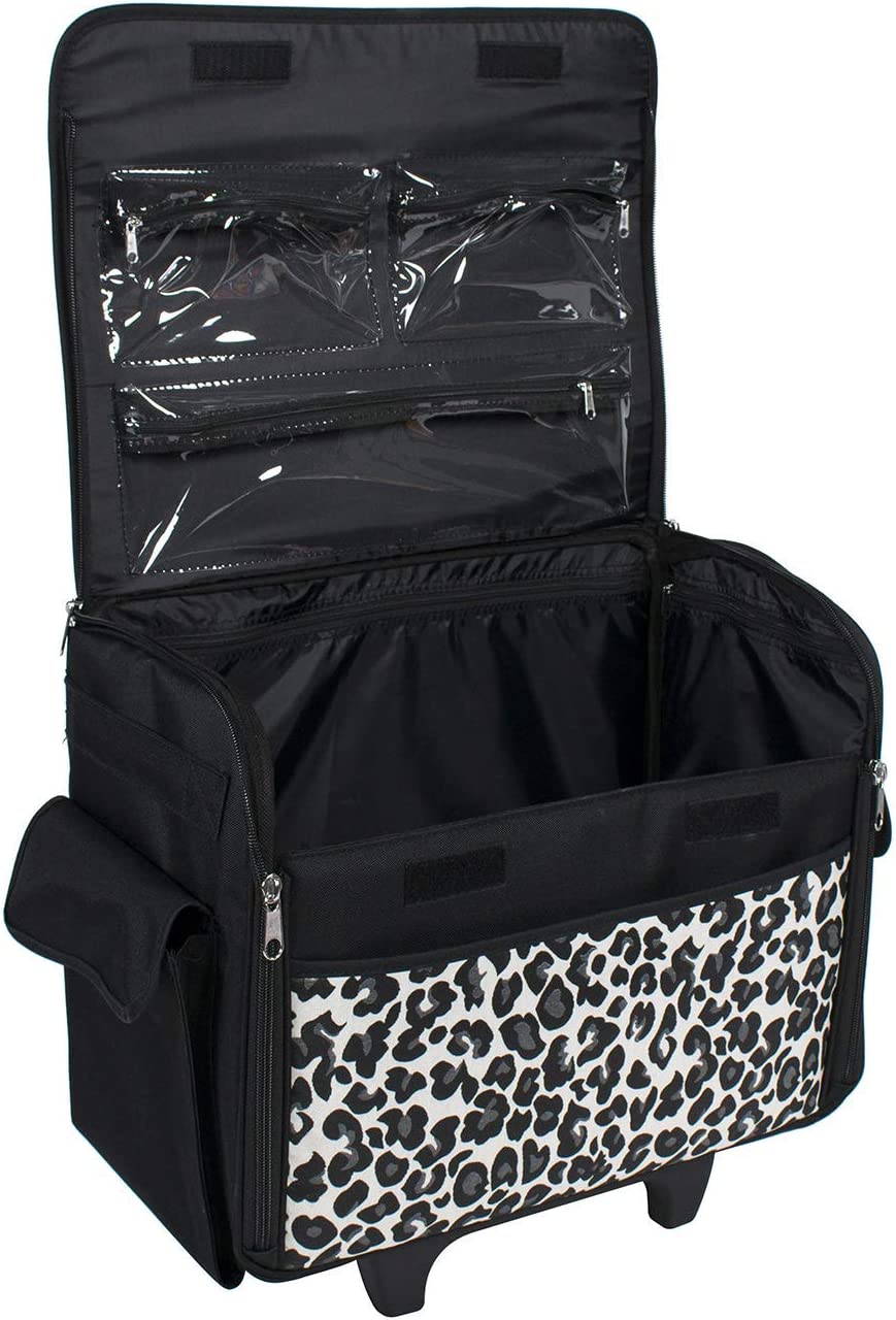 Everything Mary Collapsible Cheetah Print Rolling Sewing Machine Tote