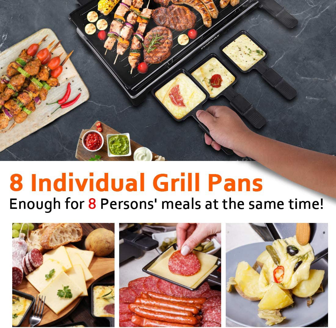 CUSIMAX Raclette Grill Electric Grill Table Portable 2 in 1 Korean BBQ Grill Indoor & Cheese Raclette. Reversible Non-stick plate. Crepe Maker with Adjustable temperature control and 8 Paddles
