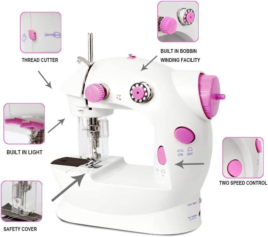 NEX Mini Sewing Machine for Beginners. Portable Dual Speed Sewing Machine with Needle Protector. Kids Women Household and Travel (Pink)