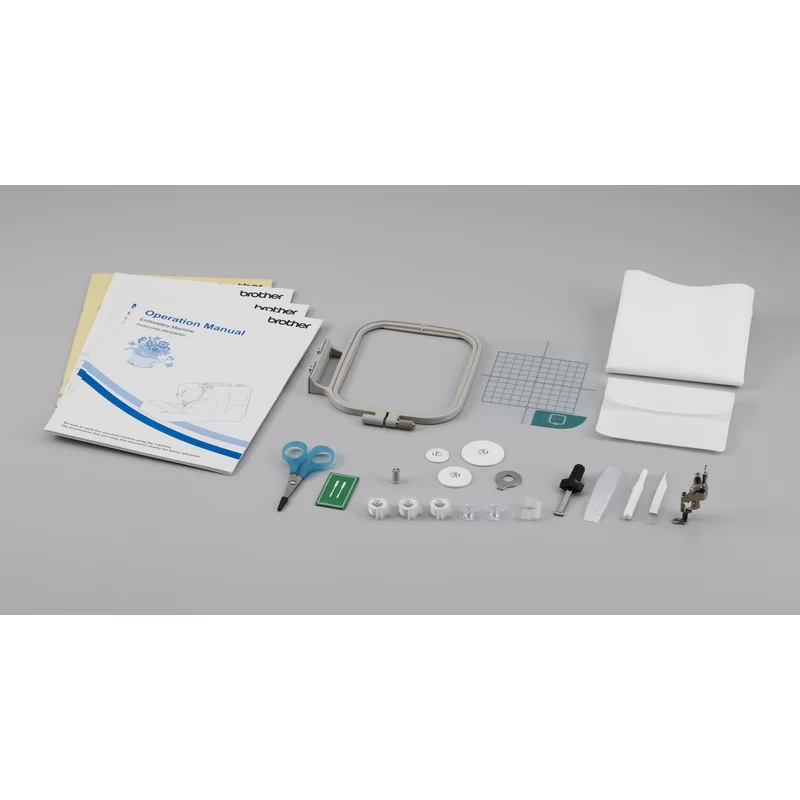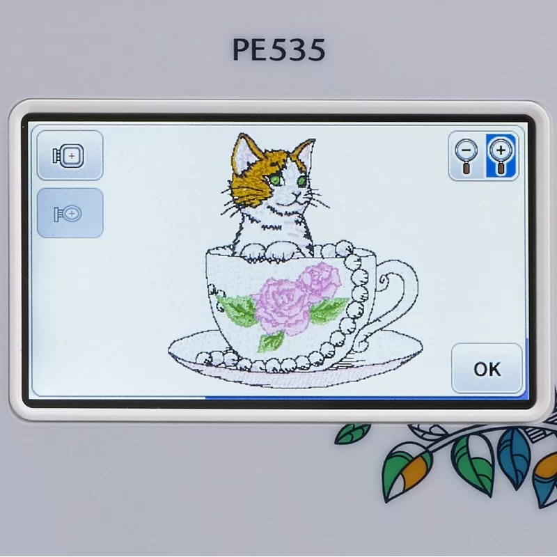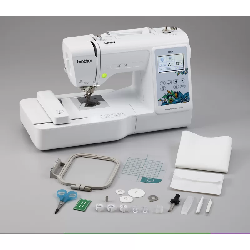 Brother PE535 Embroidery Machine. 80 Built-in Designs. 4″ x 4″ Hoop Area. Large 3.2″ LCD Touchscreen. USB Port. 9 Font Styles
