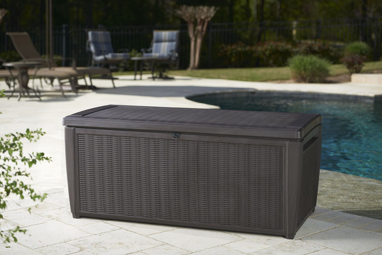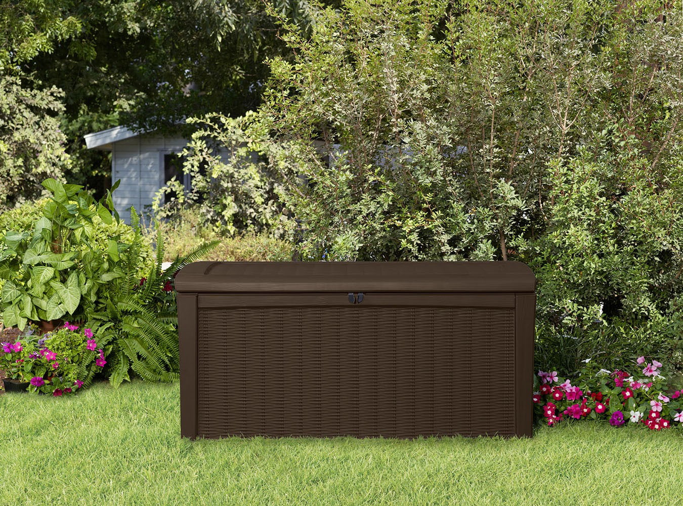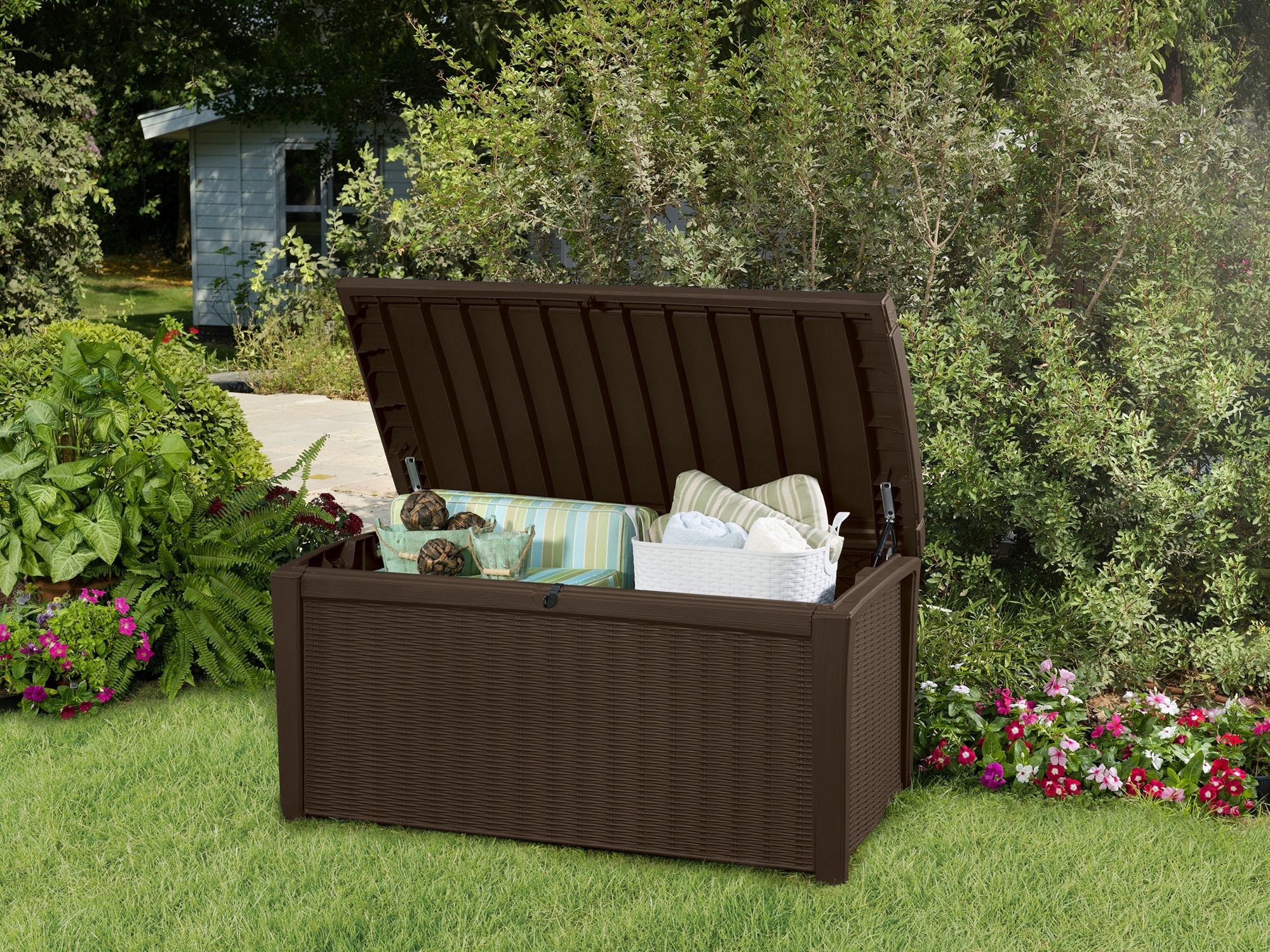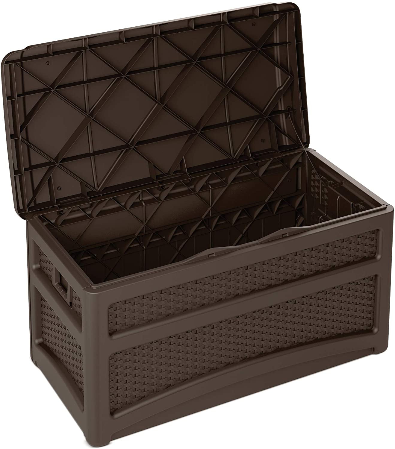 Suncast 73-Gallon Wicker Deck Box. Java