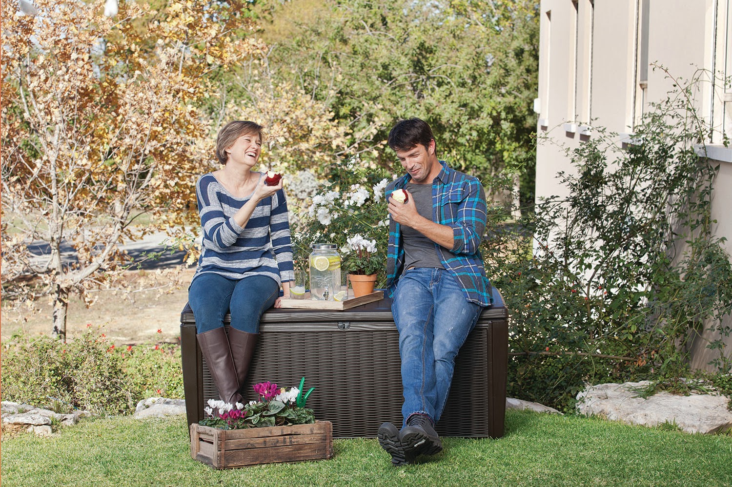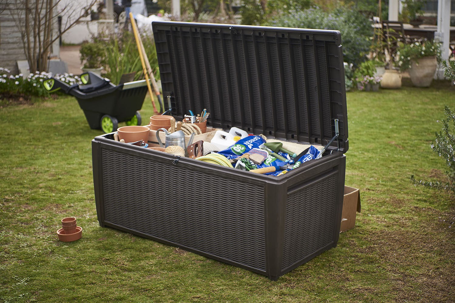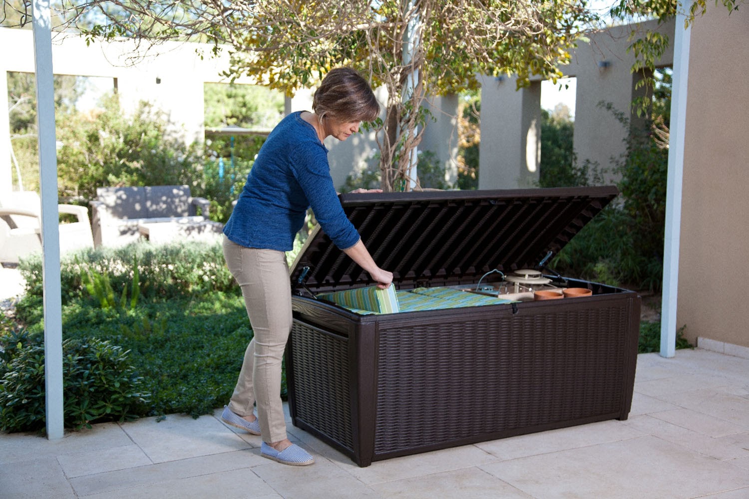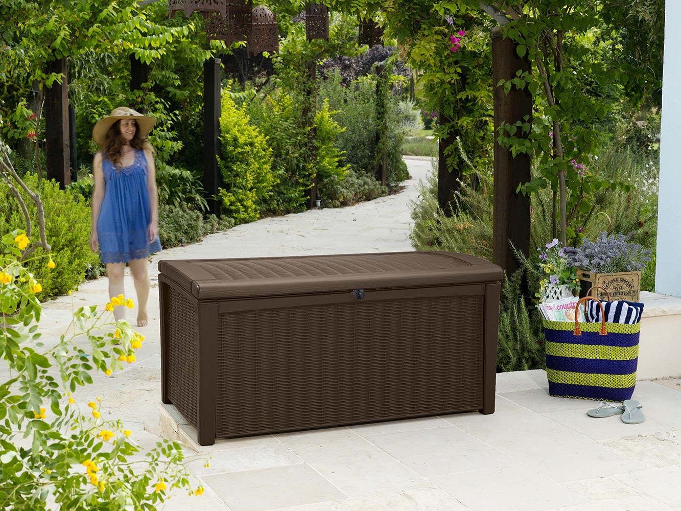 Suncast 73-Gallon Wicker Deck Box. Java