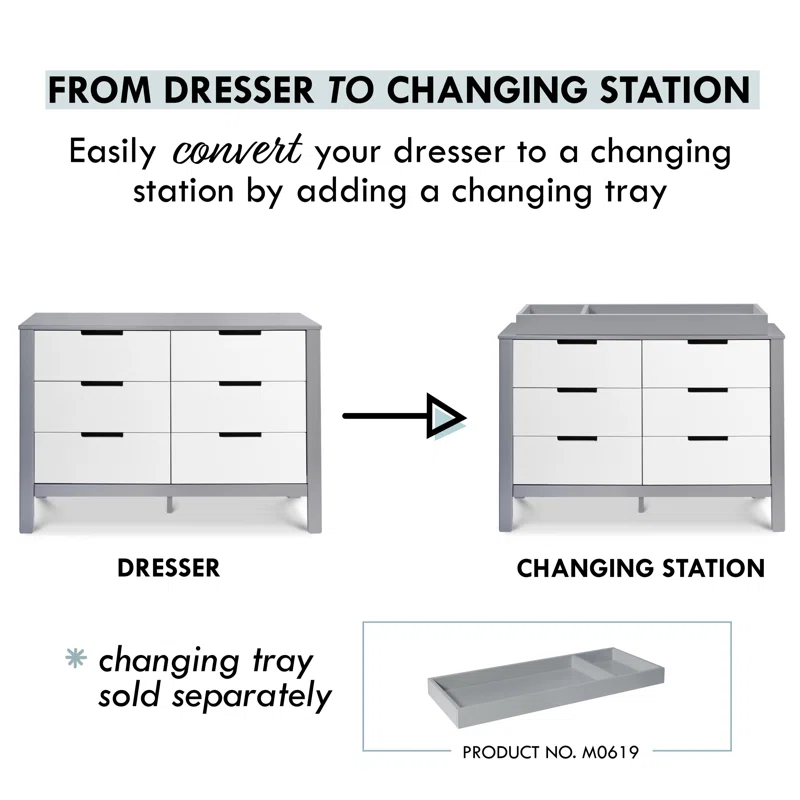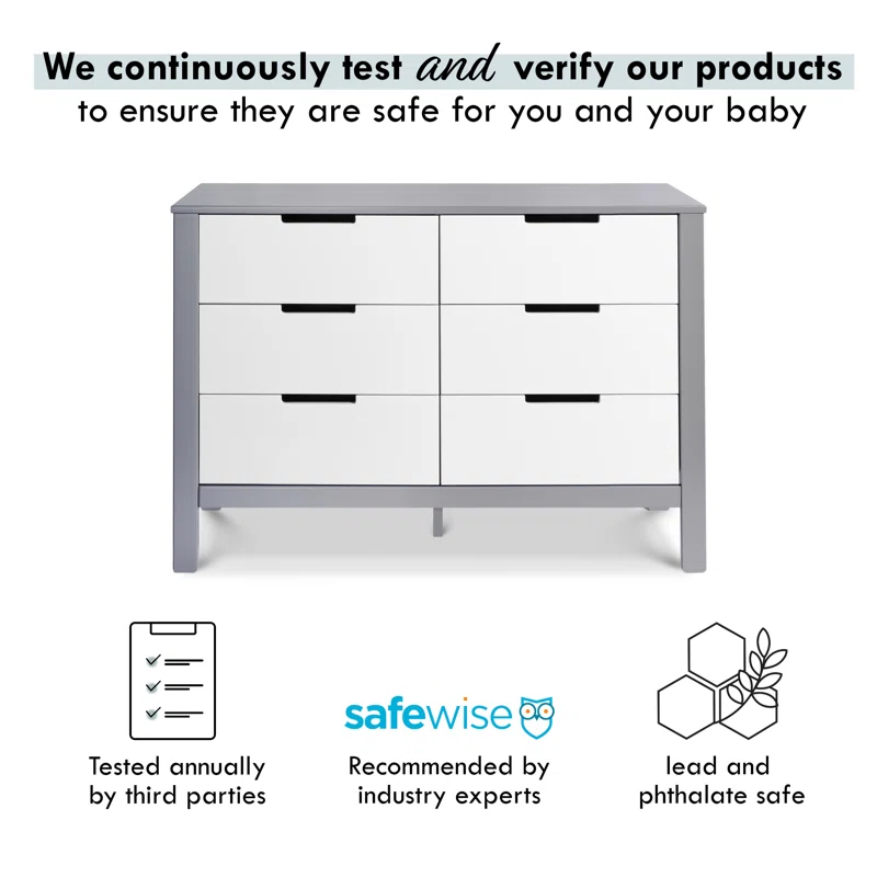 Carter-s by DaVinci Colby 6 Drawer Double Dresser. Gray/White