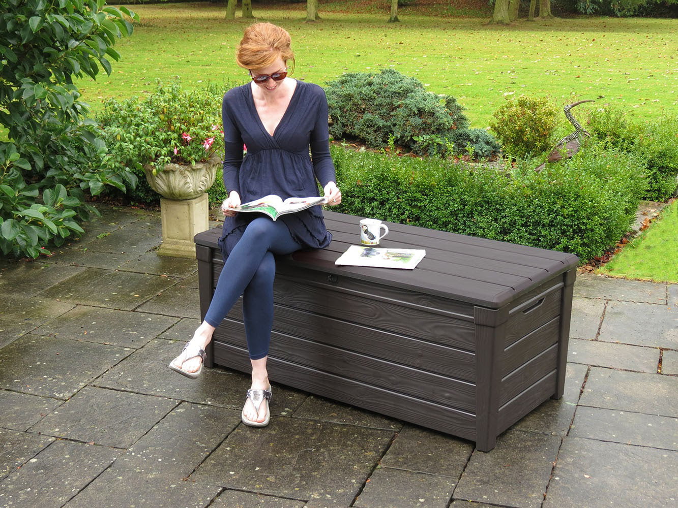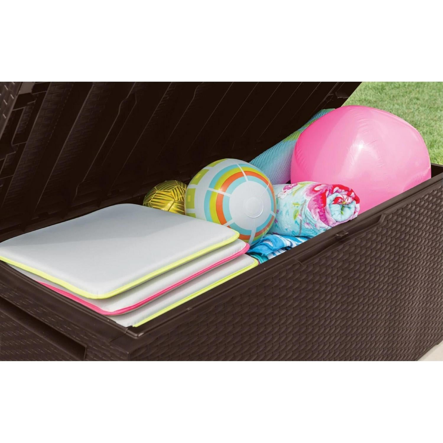 Keter Brightwood 120gal Weatherproof Patio Deck Storage Box Bench. Brown