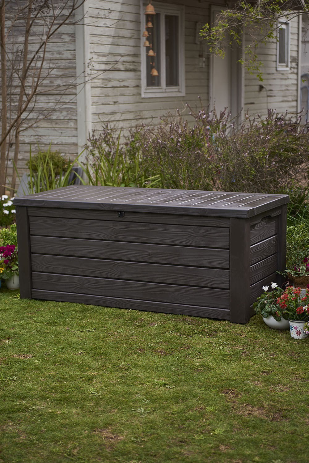 Keter Westwood Outdoor Deck Storage Box for Yard Tools. 150 gal. Espresso. Resin