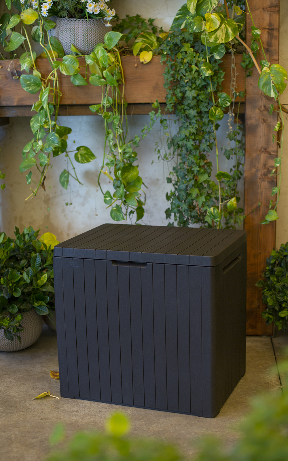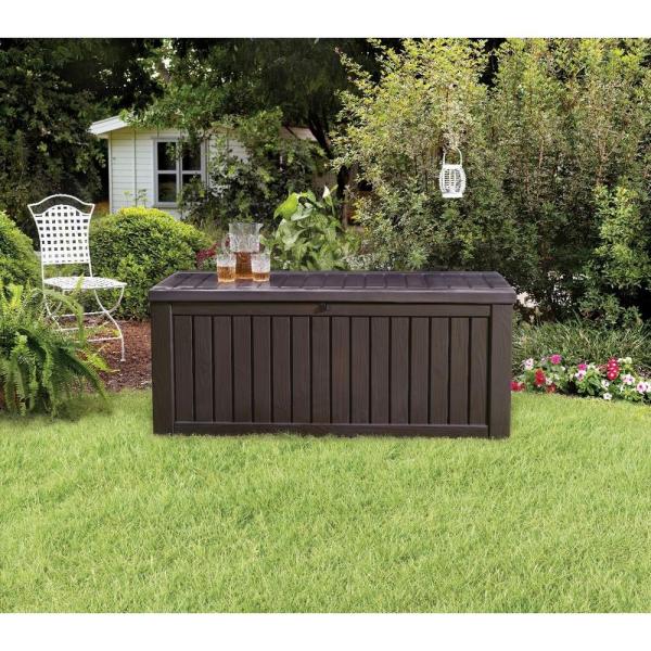 Keter City Lawn and Garden Storage 30 Gallon Plastic and Resin Deck Box. Brown