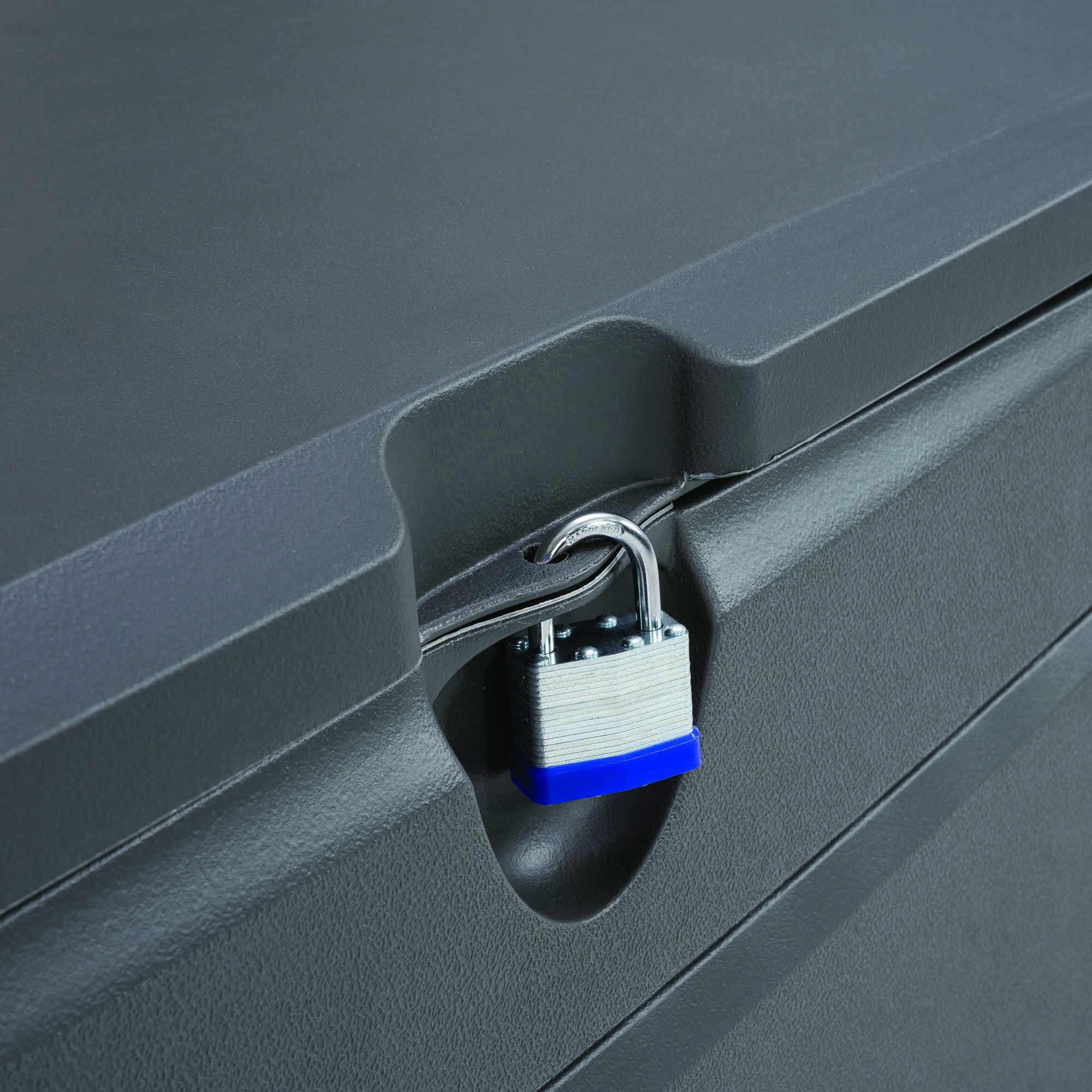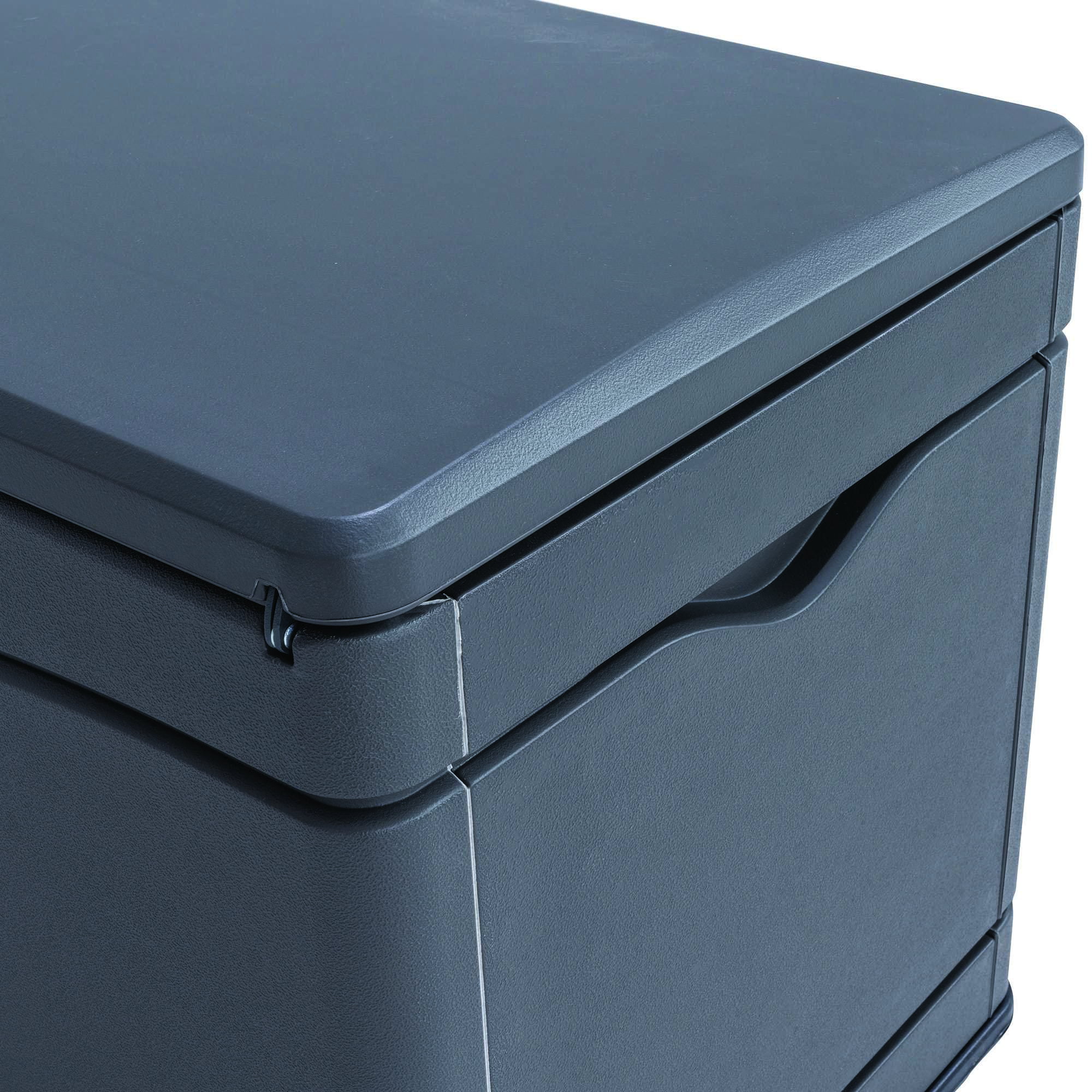 Keter Rockwood Outdoor Plastic Deck Box. All-Weather Resin Storage. 150 Gal. Grey