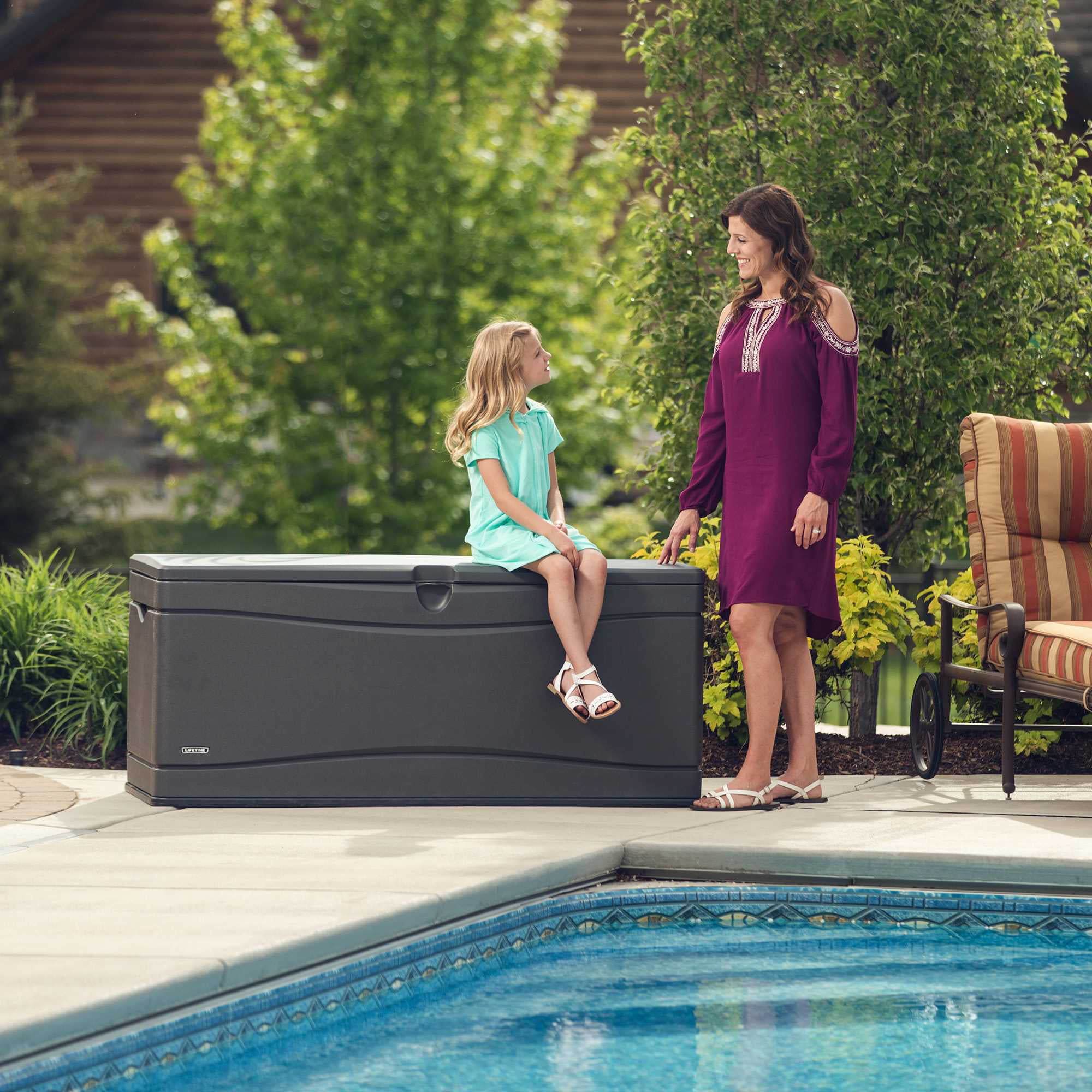 Lifetime Heavy-Duty 130 Gallon Plastic Deck Box. Gray
