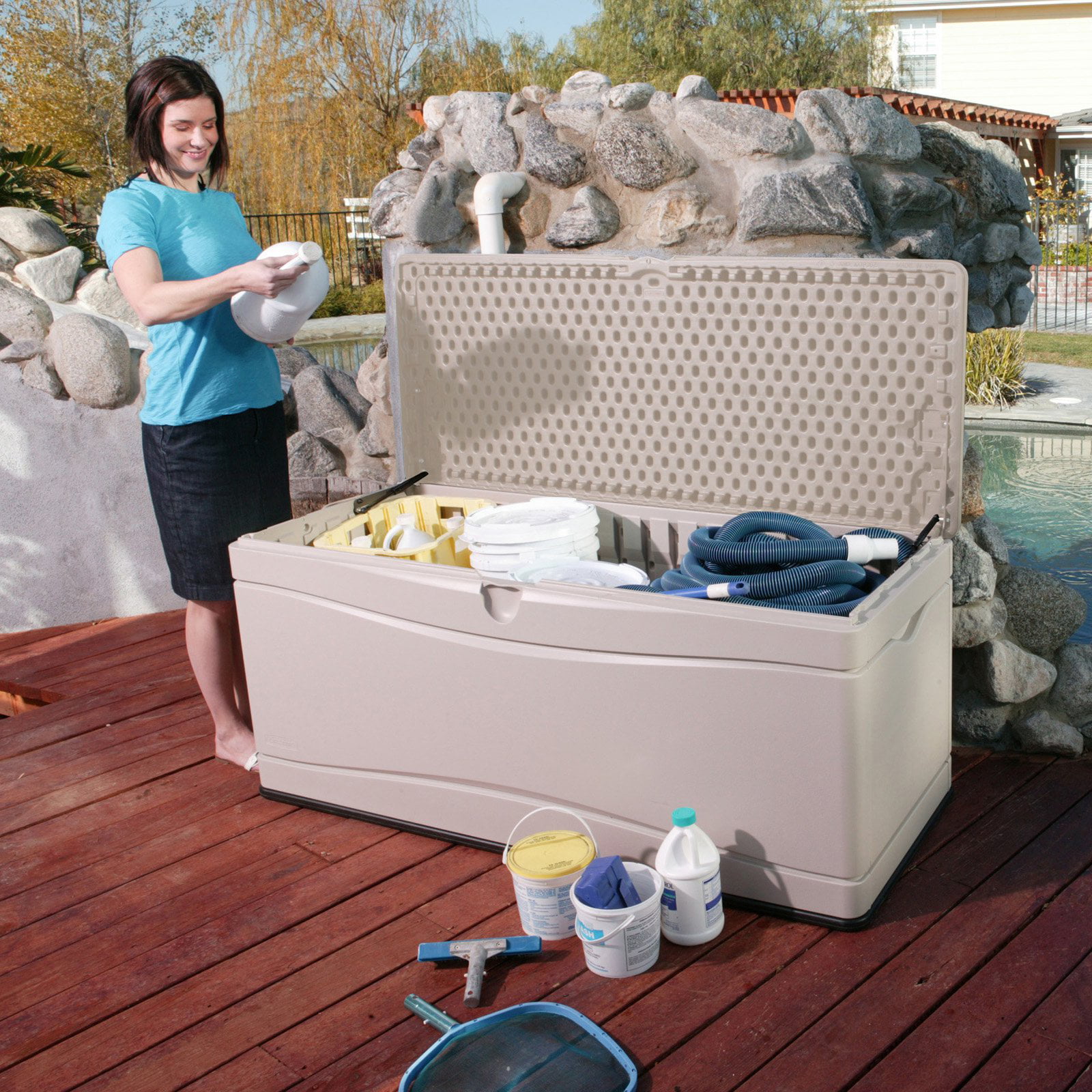 Lifetime Heavy-Duty 80 Gallon Plastic Deck Box. Desert Sand