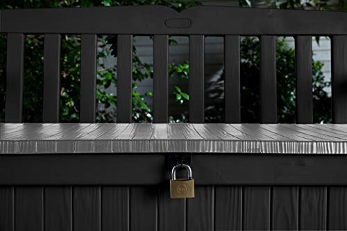 Keter Solana 70 Gallon Storage Bench Deck Box for Patio Furniture. Front Porch Decor and Outdoor Seating – Perfect to Store Garden Tools and Pool Toys. Grey