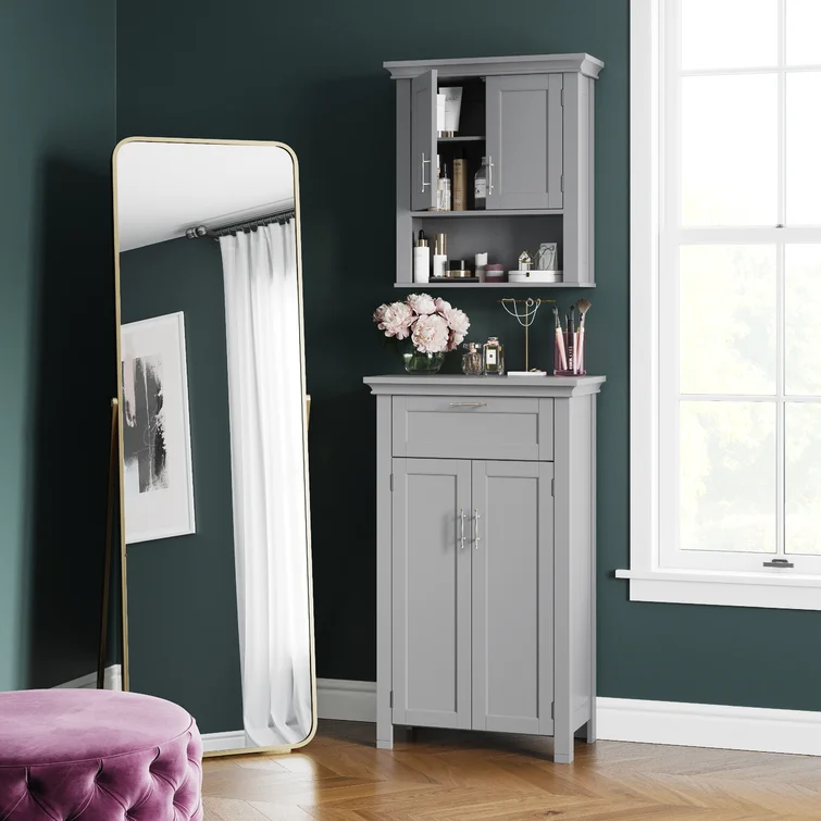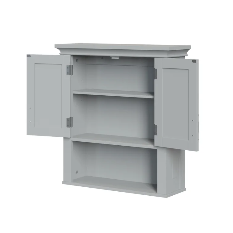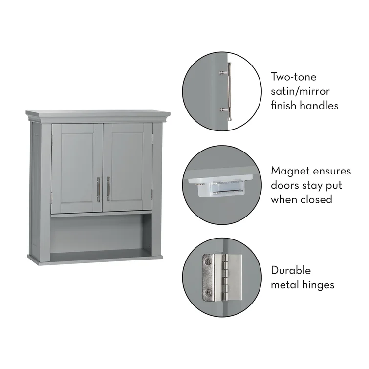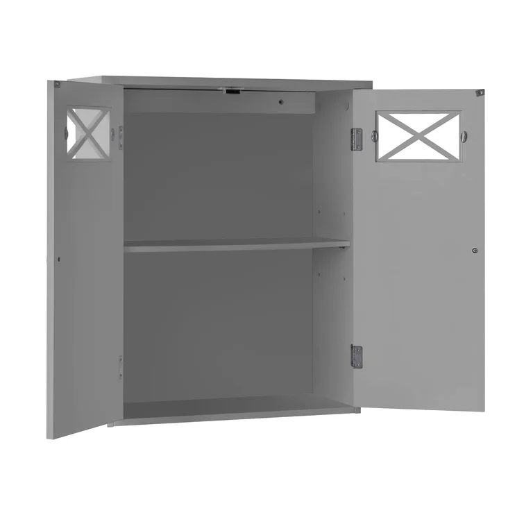 Beachcrest Home Woodley Removable Wooden Wall Cabinet with Cross Molding and 2 Doors. Gray