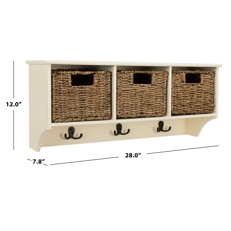 Safavieh Home Collection Finley White Hanging 3 Basket Wall Coat Rack. White