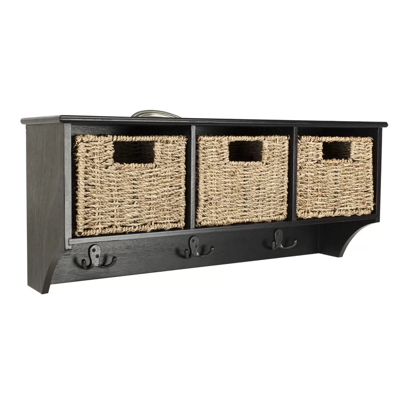 Safavieh Home Collection Finley Black Hanging 3 Basket Wall Coat Rack. Black
