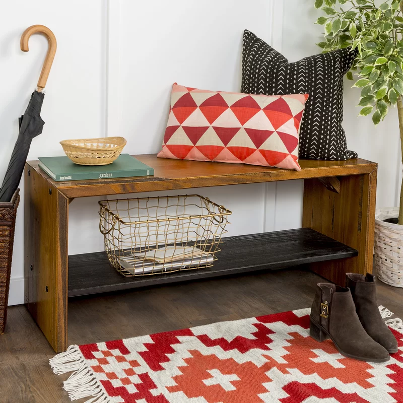 Walker Edison Shiloh Rustic Solid Reclaimed Wood Entryway Bench. 42 Inch. Amber