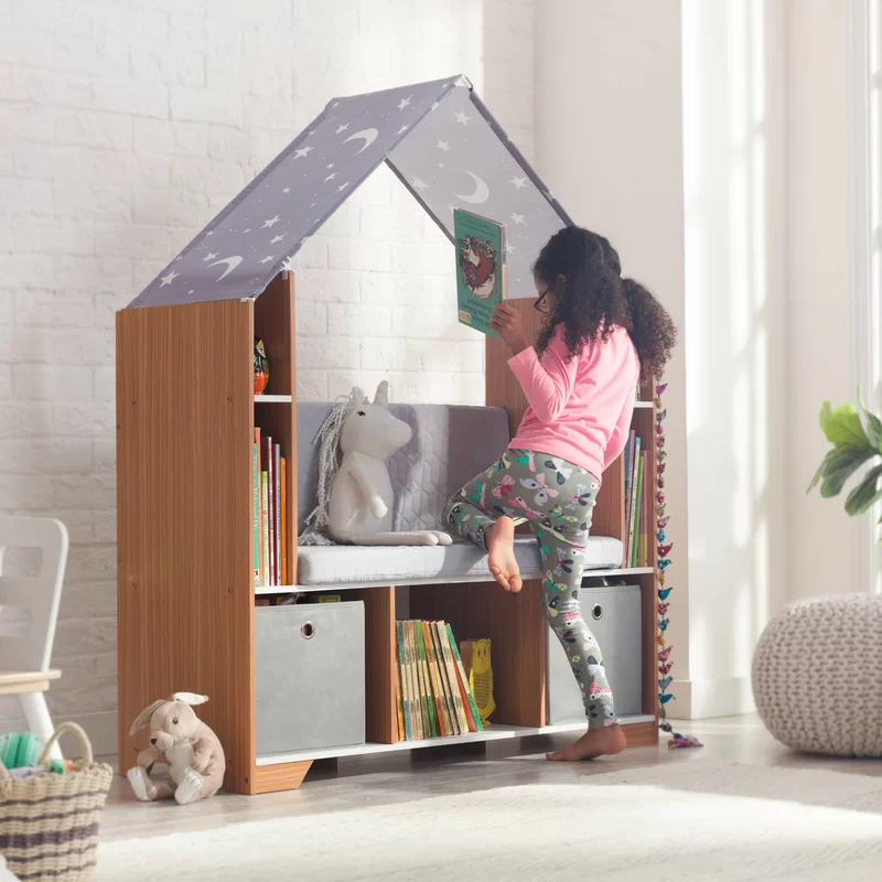 KidKraft Little Dreamer Deluxe Reading Nook. Children-s Bookcase Furniture with Storage Bins. Gift for Ages 3-8 44 x 15.8 x 54.2