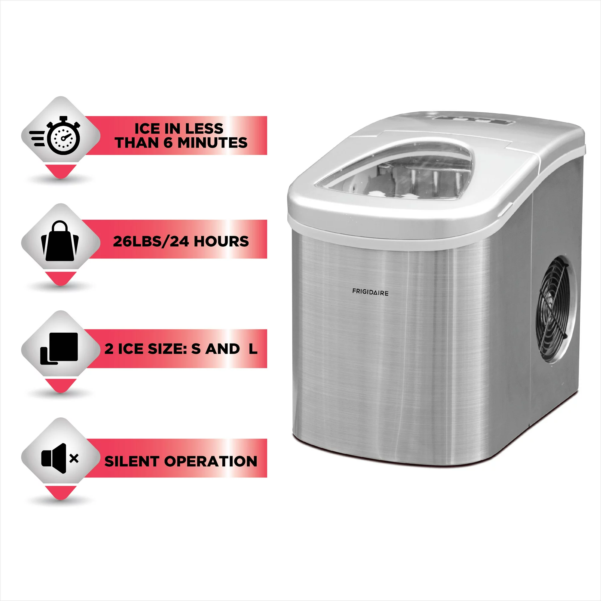 Frigidaire EFIC117-SS 26 lb. Countertop Ice Maker. Stainless Steel