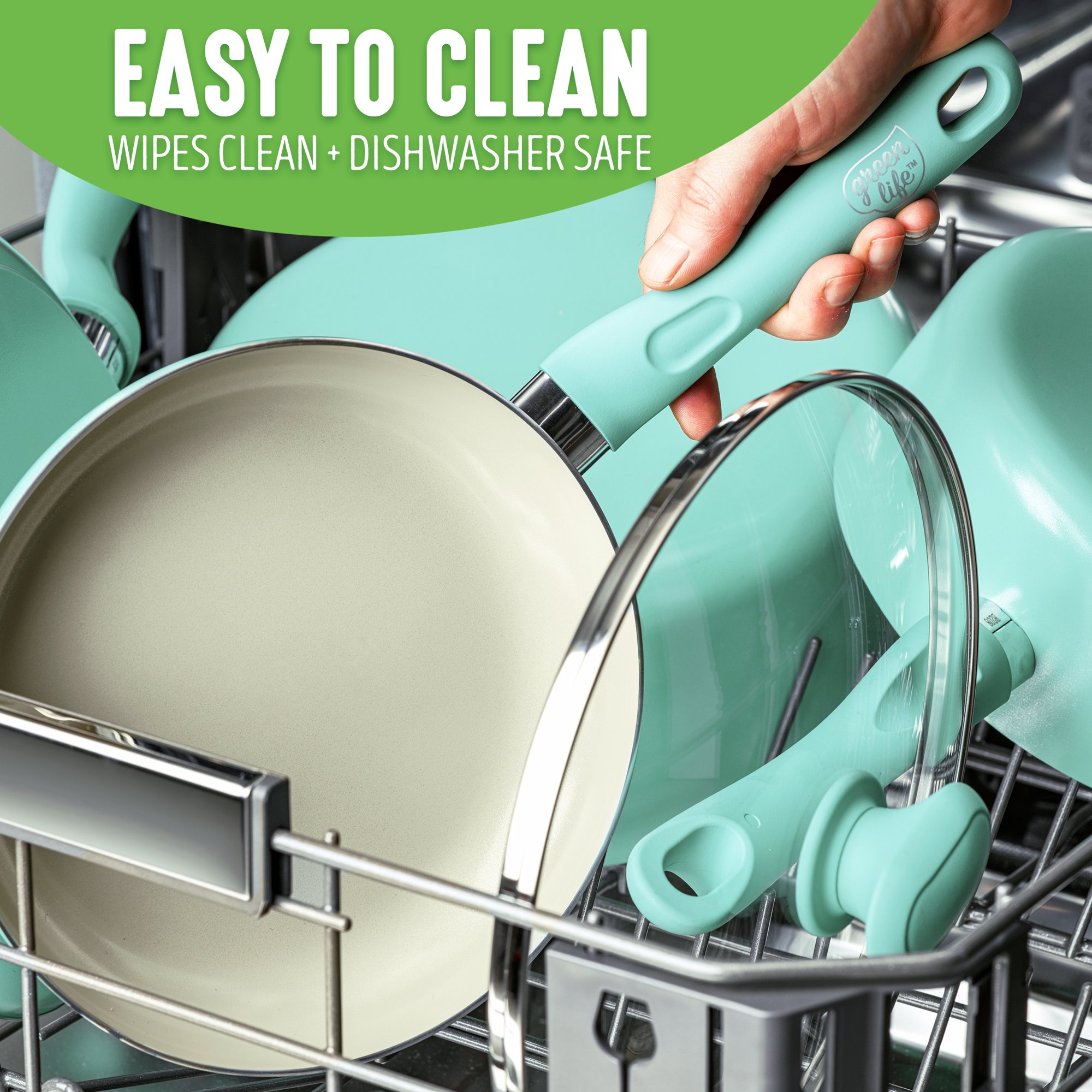 GreenLife Soft Grip Diamond Healthy Ceramic Nonstick. 14 Pieces Cookware Pots and Pans Set. Turquoise