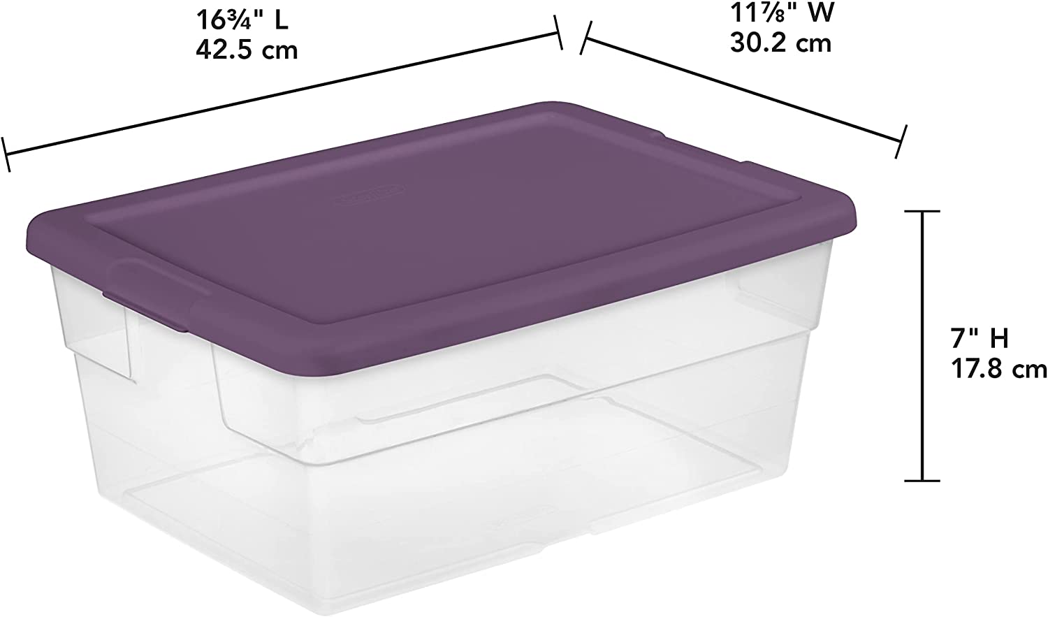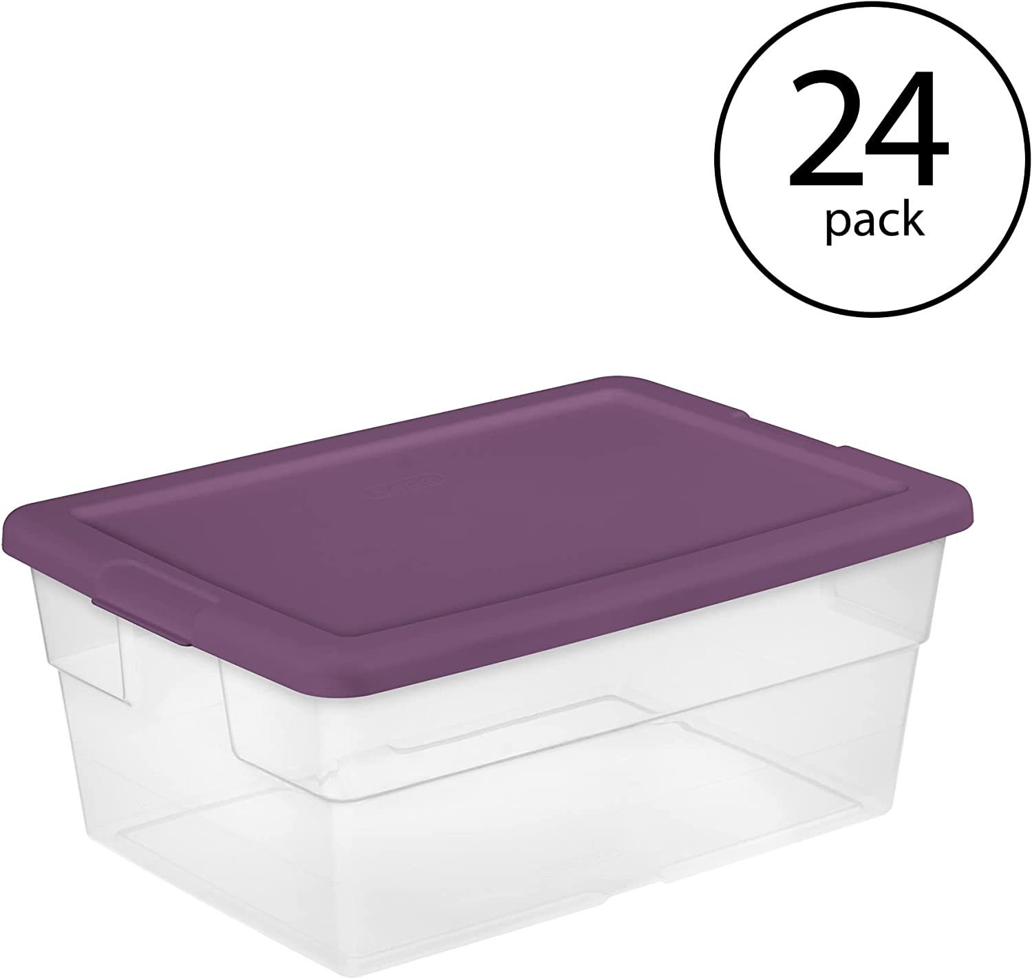 Sterilite Stackable 16 Quart Clear Home Storage Box with Handles and Purple Lid for Efficient Household Storage and Organization. (24 Pack)