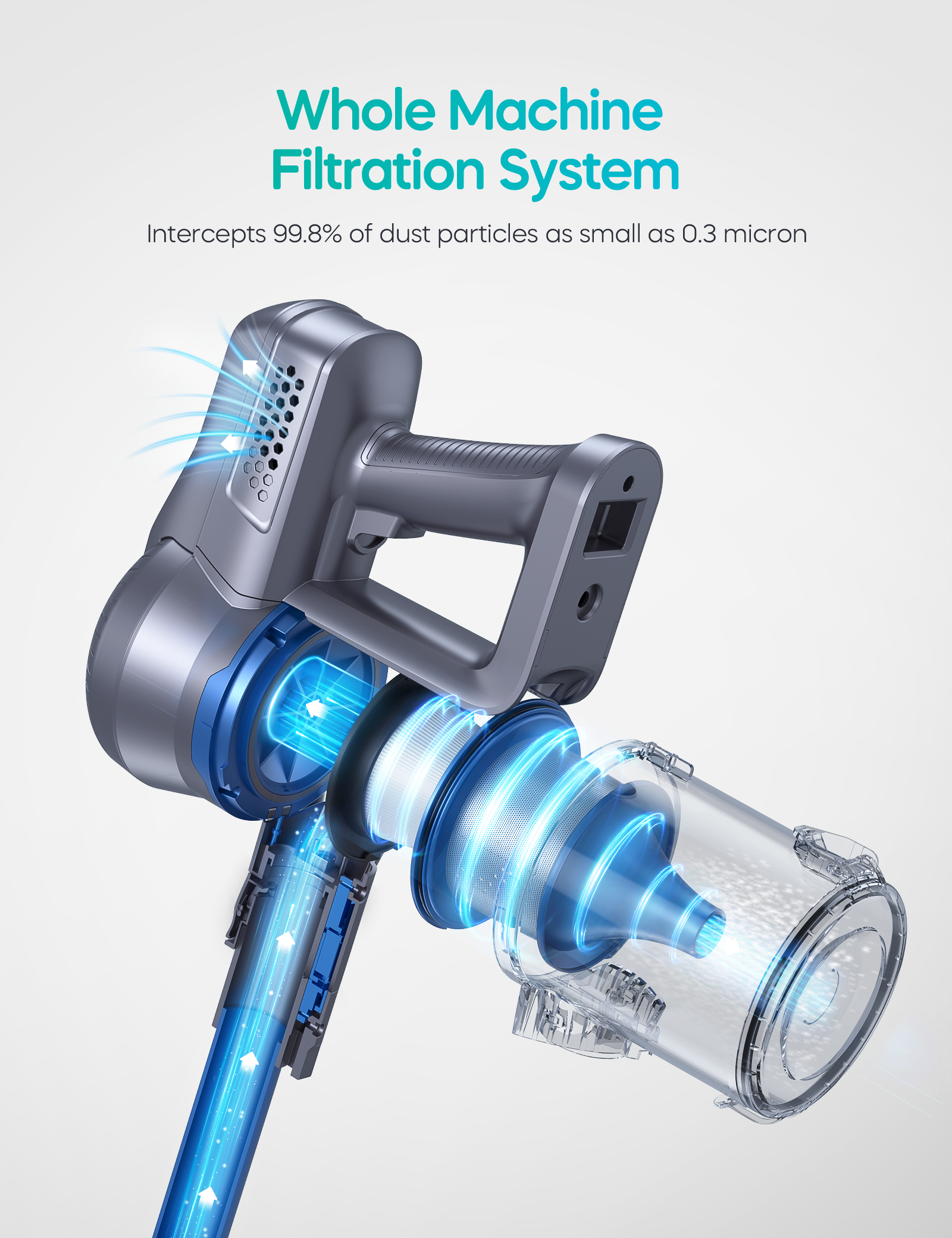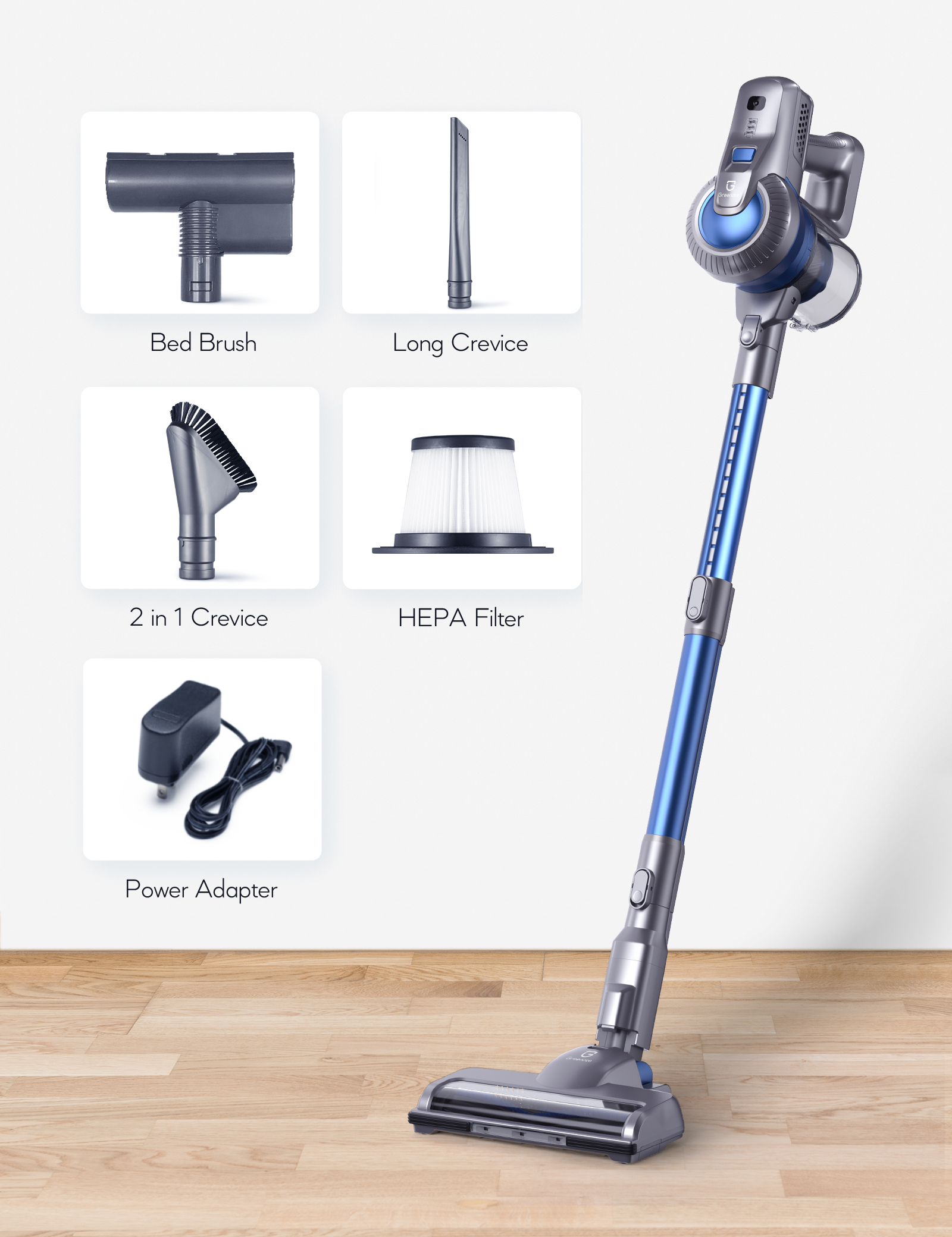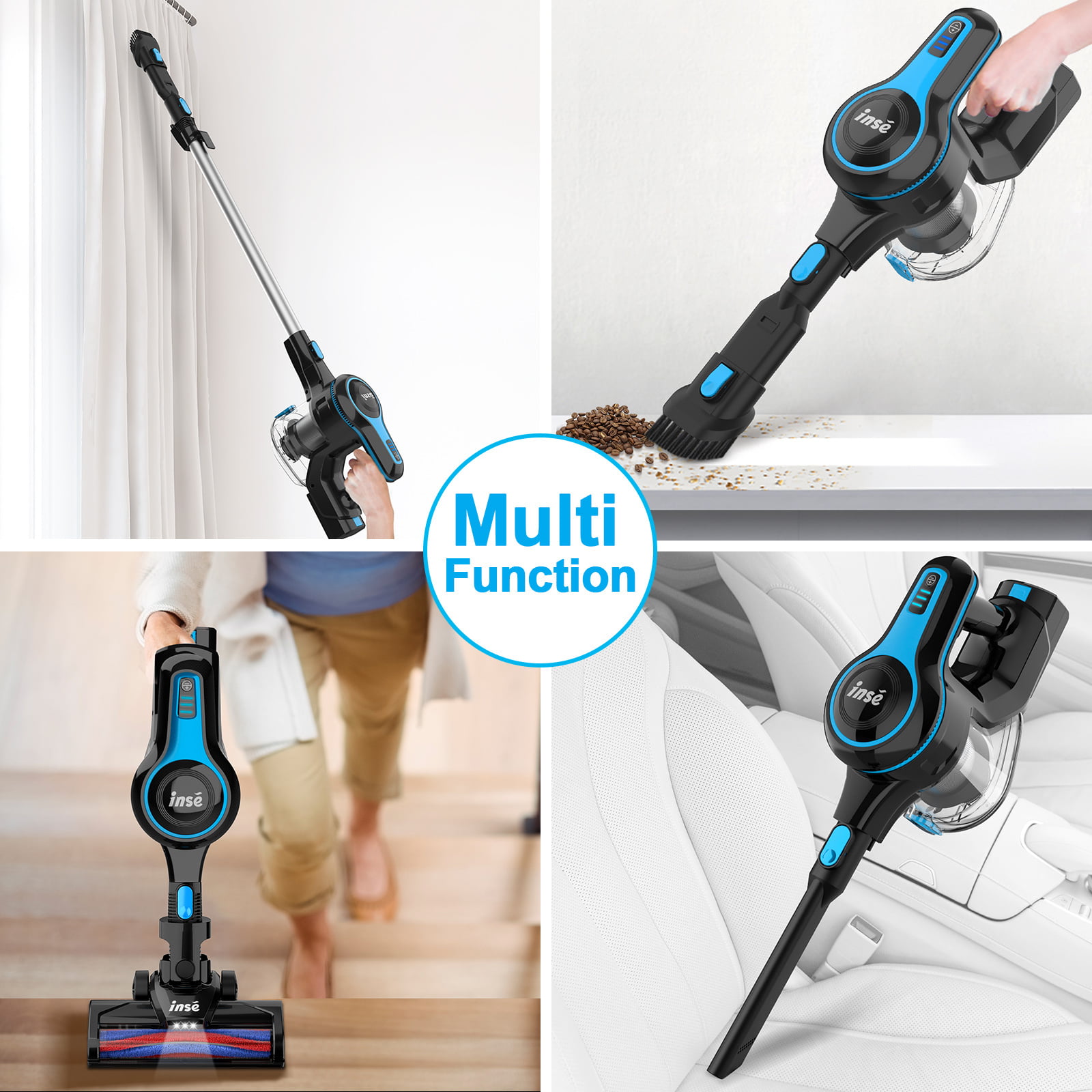 INSE Cordless Vacuum Cleaner. 6-in-1 Rechargeable Stick Vacuum with 2200 mAh Battery. 20kPa Powerful Lightweight Vacuum Cleaner up to 45 Mins Runtime. for Home Hard Floor Carpet Pet Hair. Blue