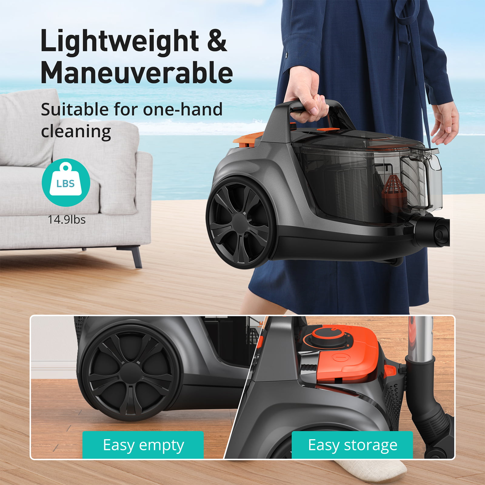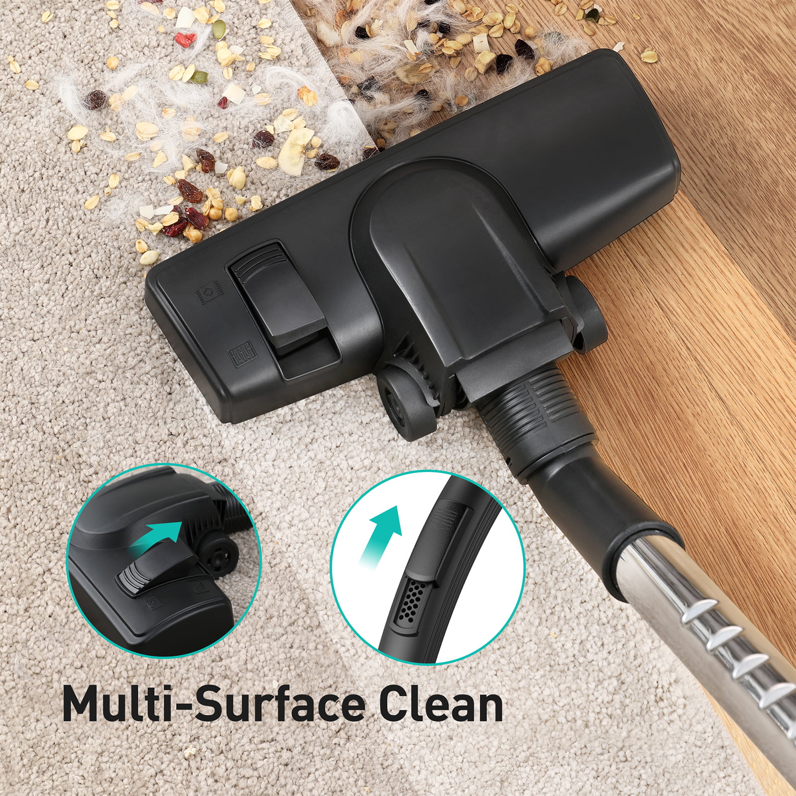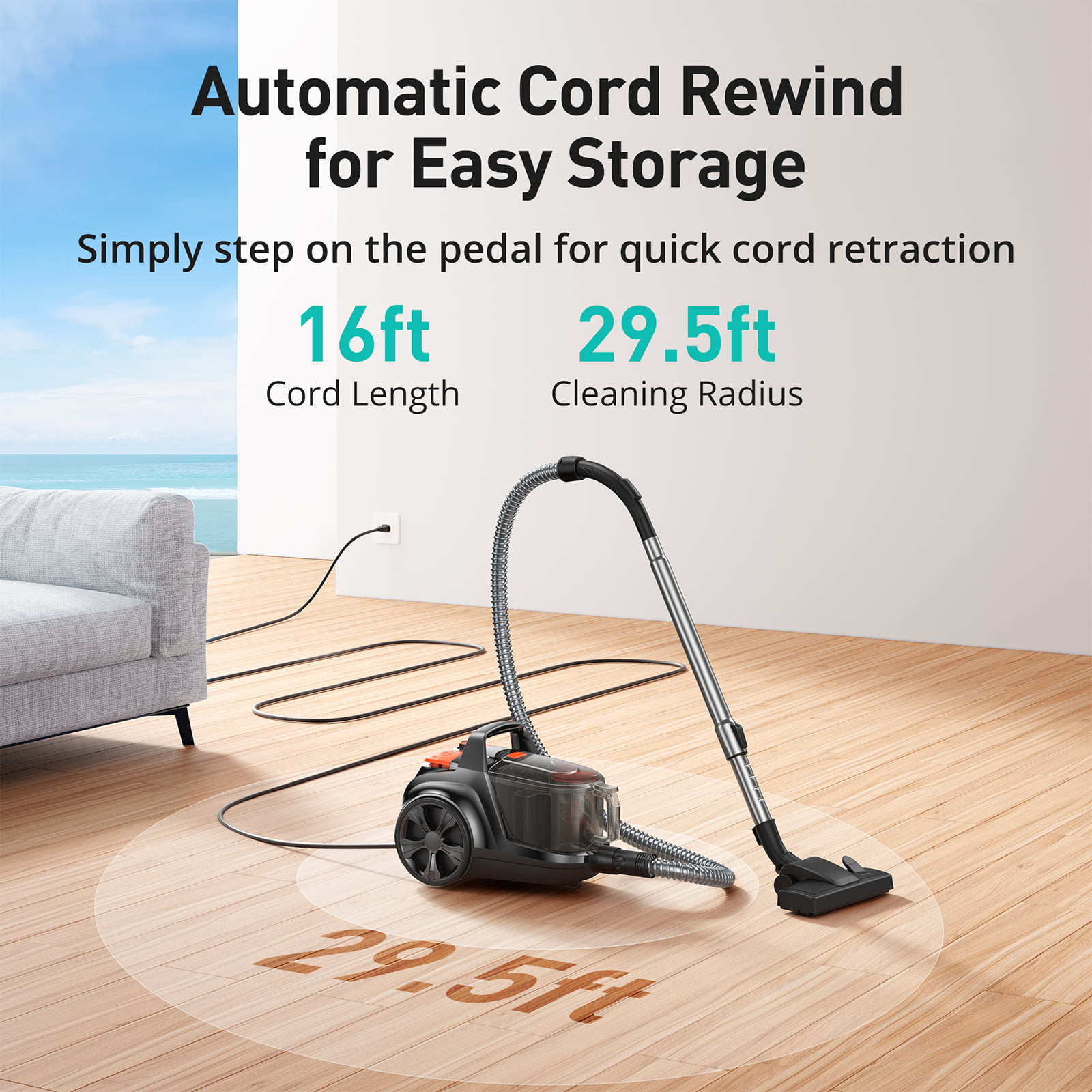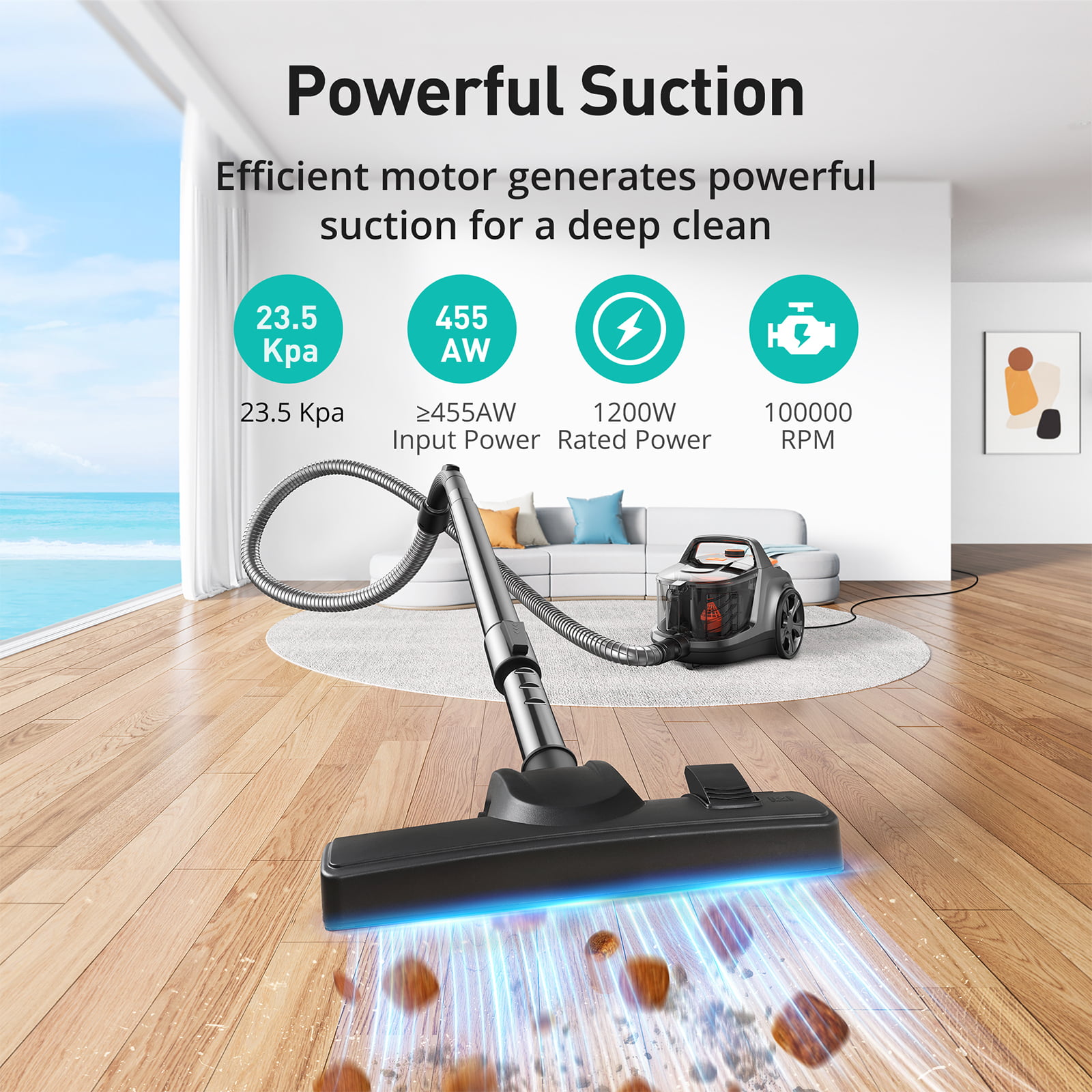 Aspiron Canister Vacuum Cleaner. 1200W Lightweight Bagless Vacuum Cleaner. 3.7QT Large Dust Cup. Automatic Cord Rewind. 5 Tools. HEPA Filter. Variable Speed Portable Vacuum for Hard Floors. Car. Pet