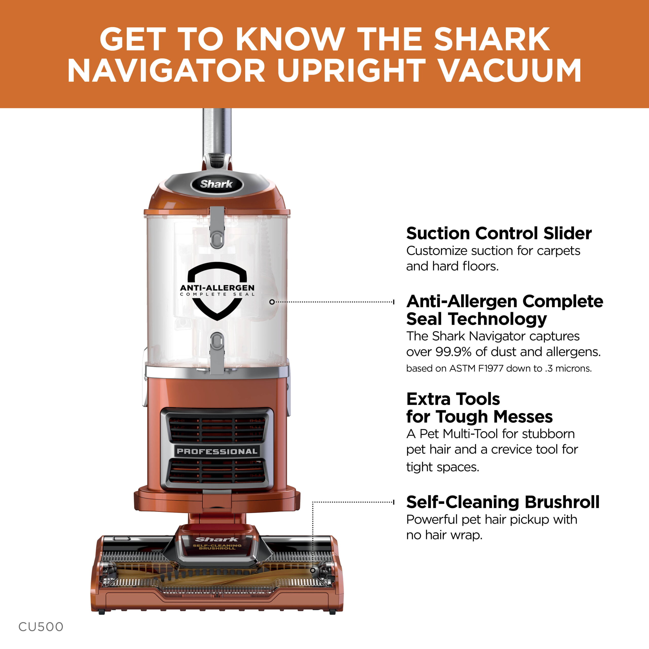 Shark® Navigator® Upright Vacuum with Self-Cleaning Brushroll. CU500