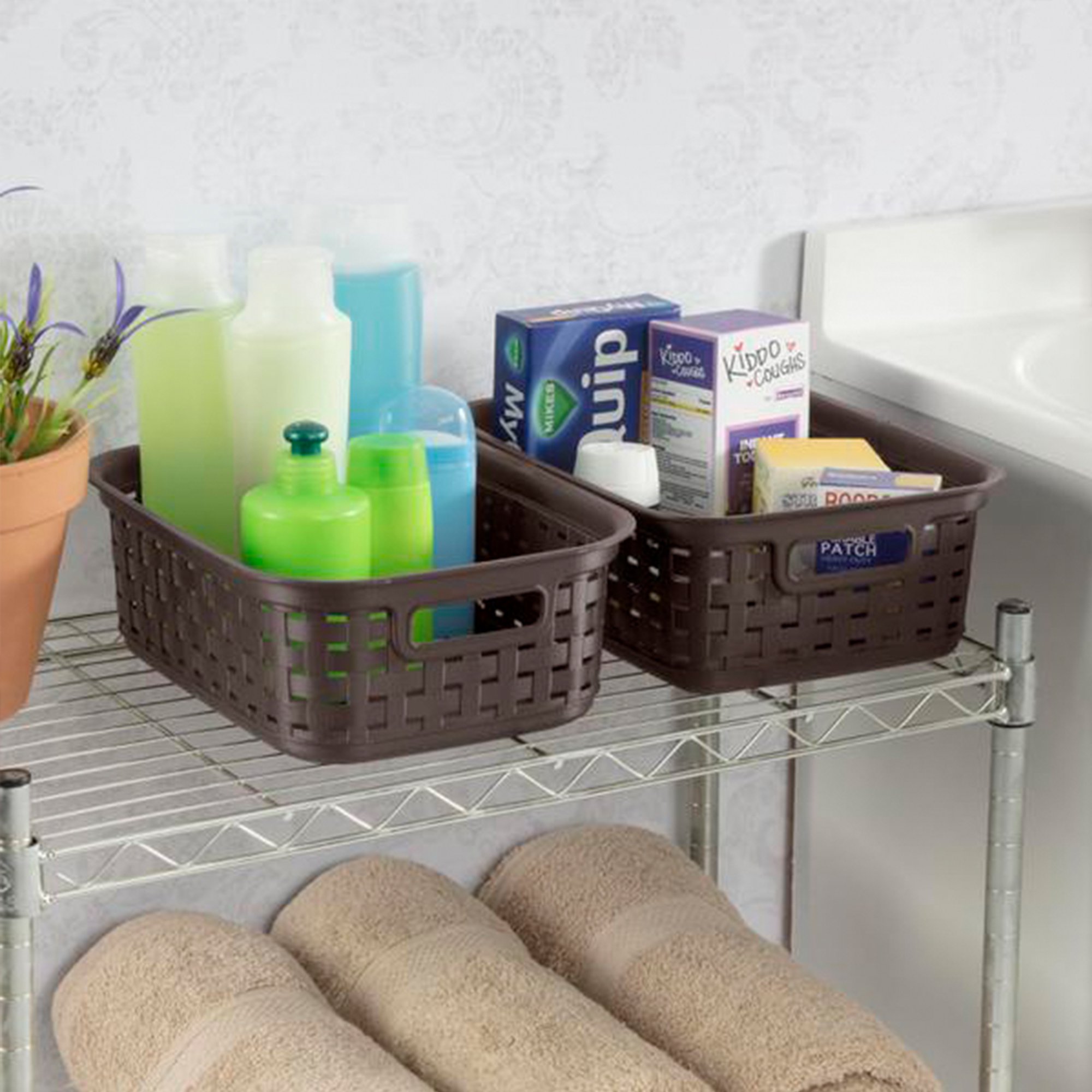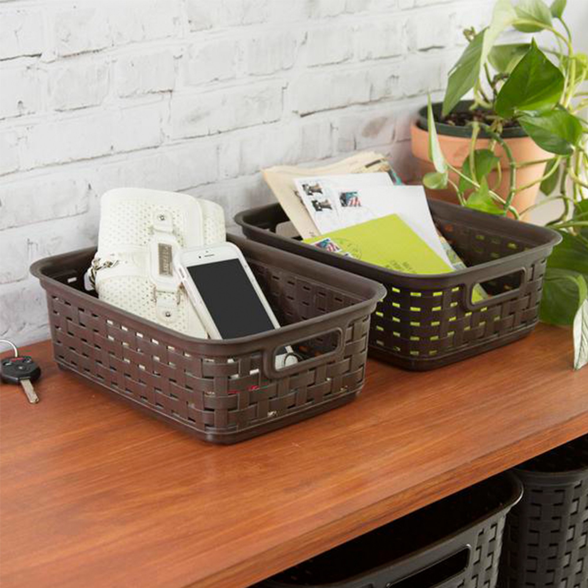 Sterilite Small 11 Inch Long Weave Storage Basket Organizer. Espresso (16 Pack)