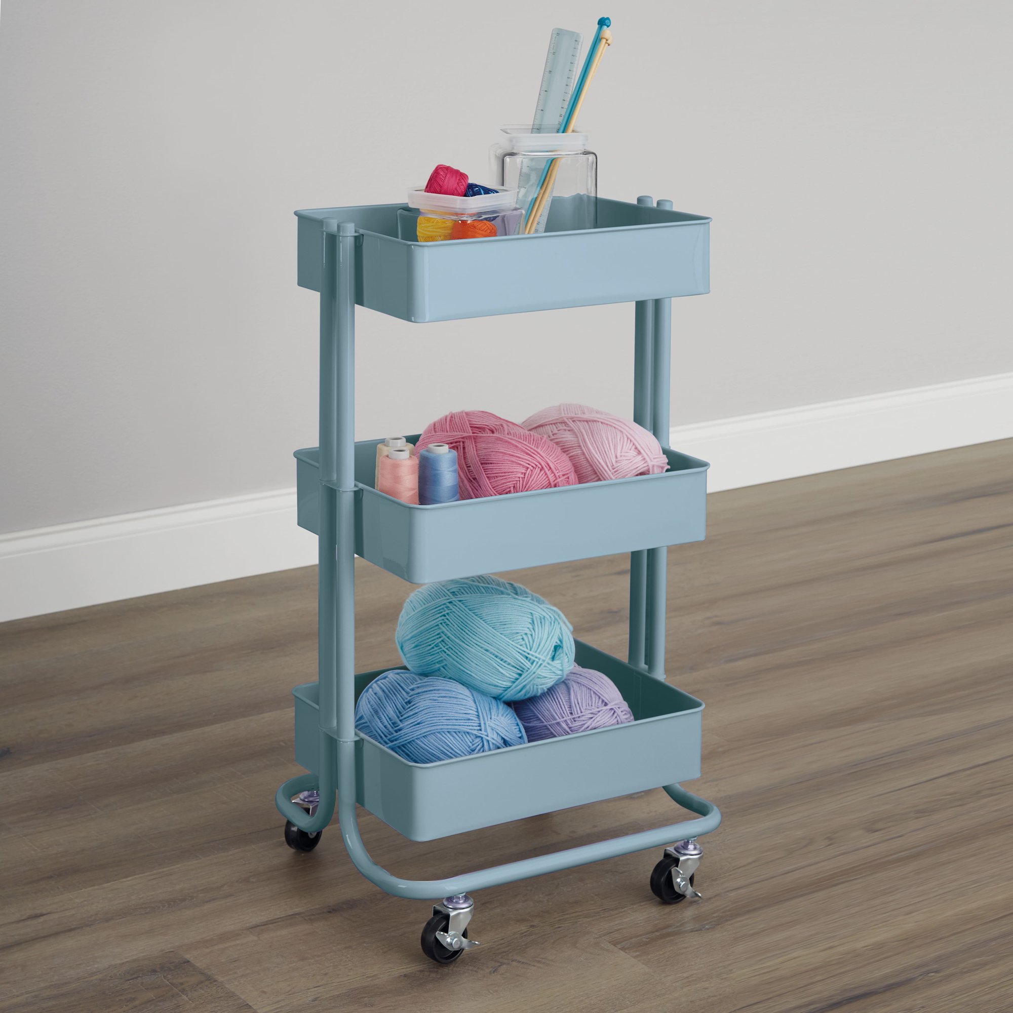 Simply Tidy Lexington 3-Tier Rolling Cart. Dusty Blue
