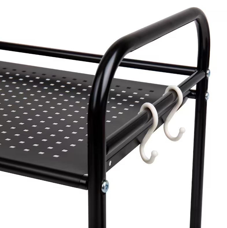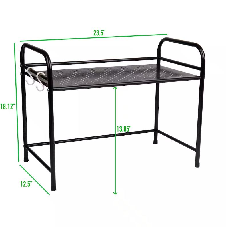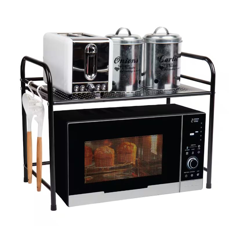 Mind Reader Black Metal Rack Utility Shelf & Microwave Stand with Hooks