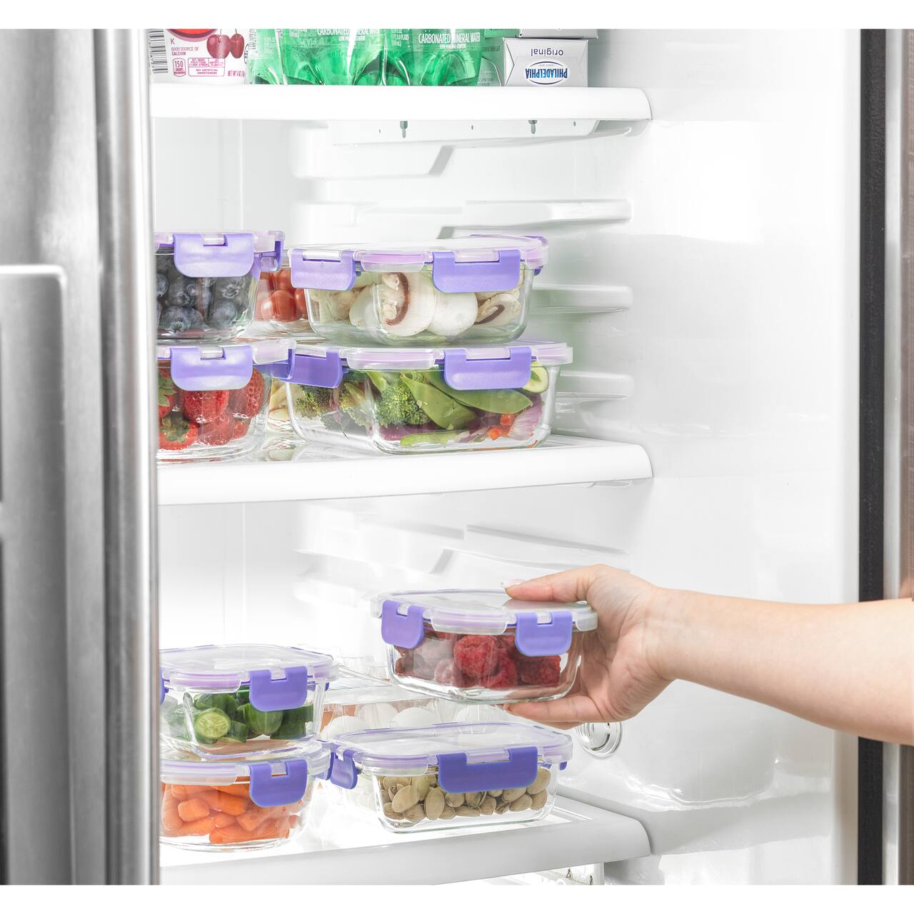 Joyful by JoyJolt 24-Piece Purple Glass Storage Container Set with Leakproof Lids