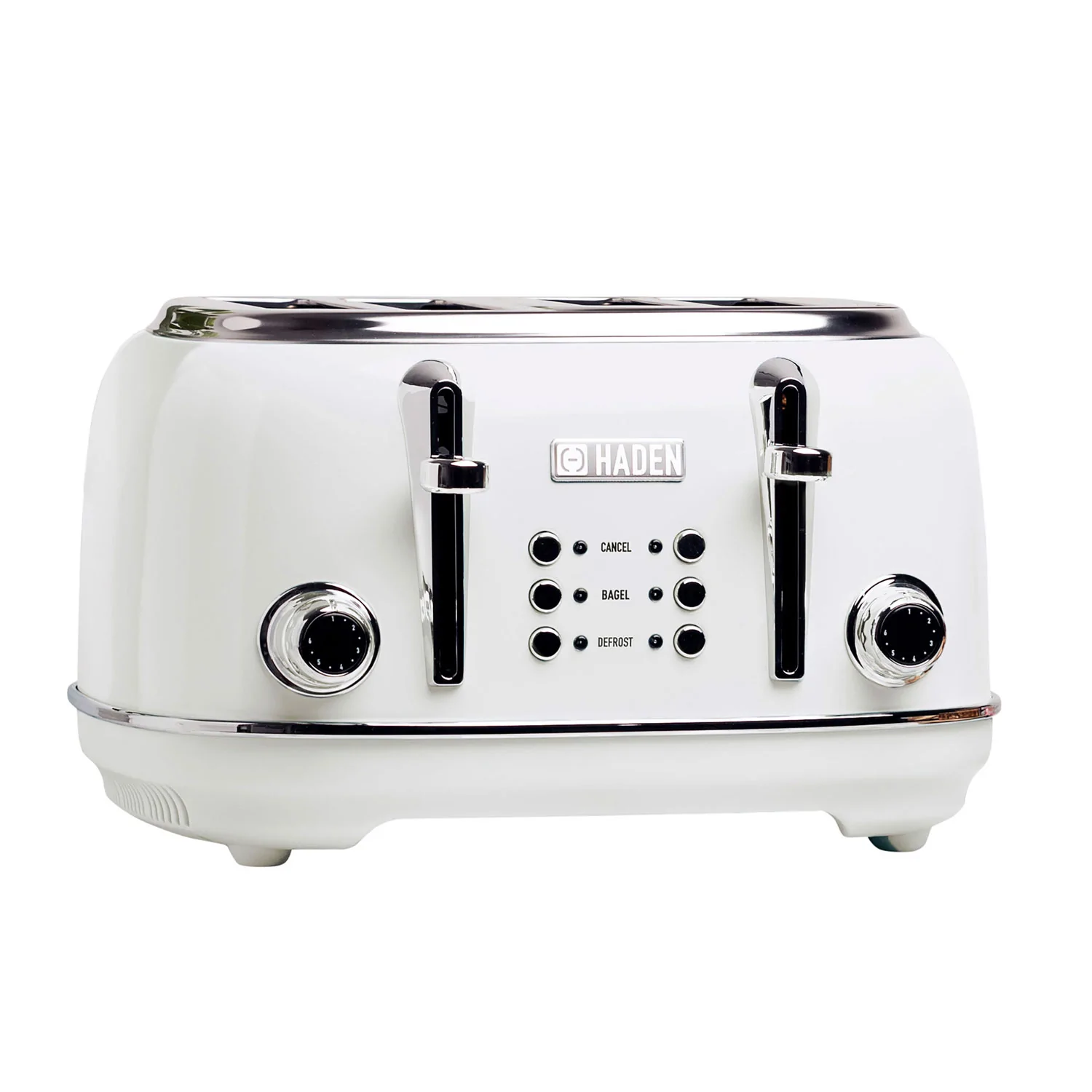 Haden Heritage 1.7 Liter Electric Tea Kettle & 4 Slice Wide Slot Toaster. White