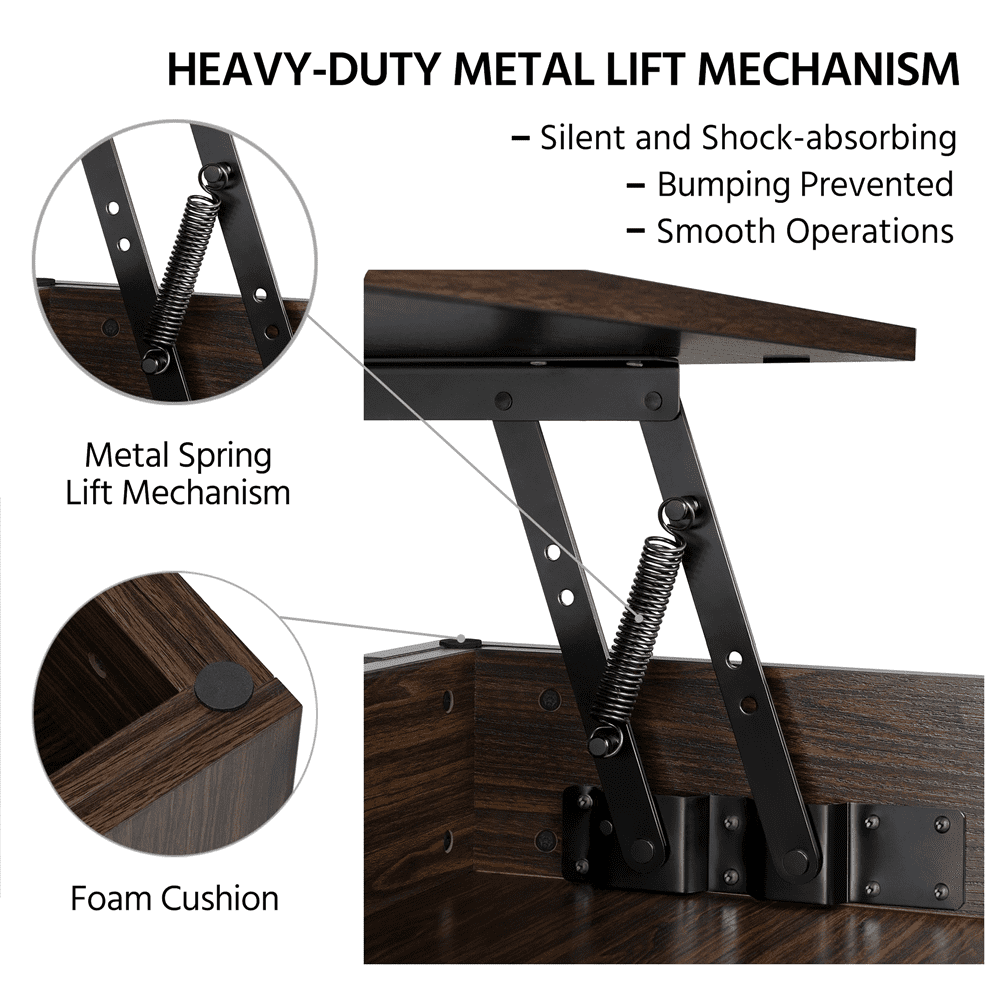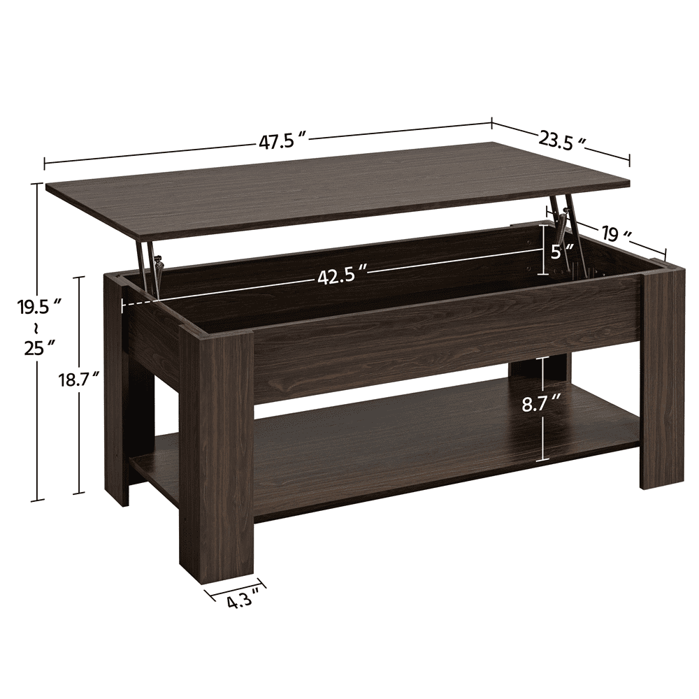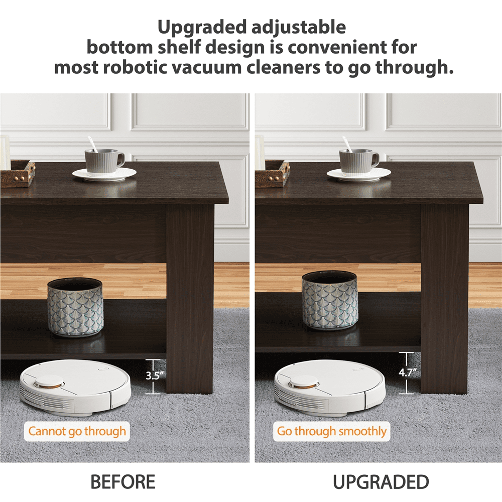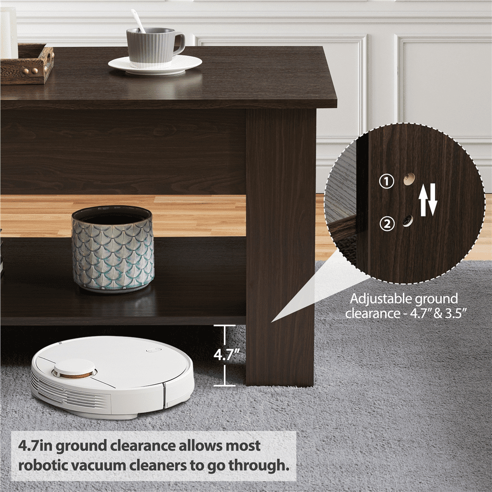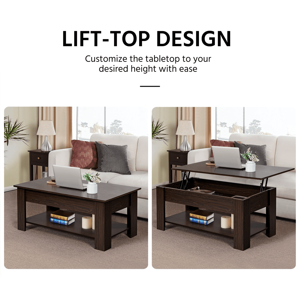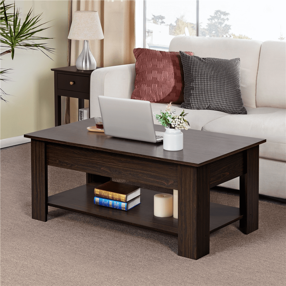 SMILE MART Modern 47.5″ Wood Lift Top Coffee Table with Lower Shelf. Espresso