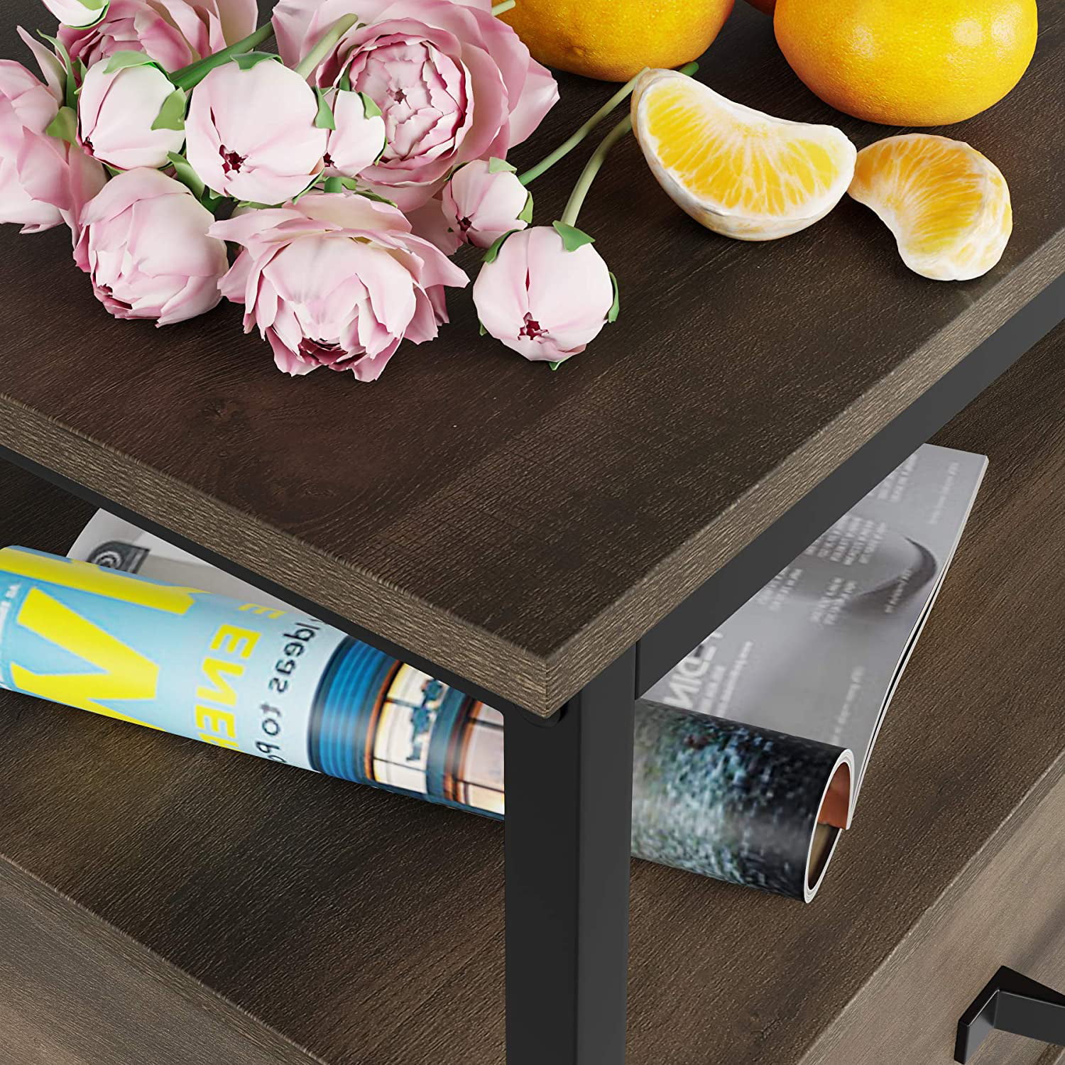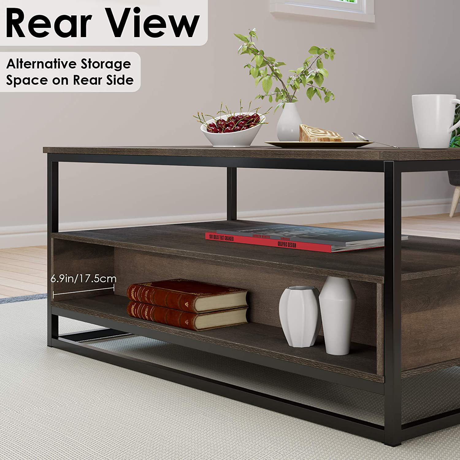 Alden Design Industrial Coffee Table with Storage Shelf. Rustic Brown