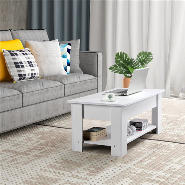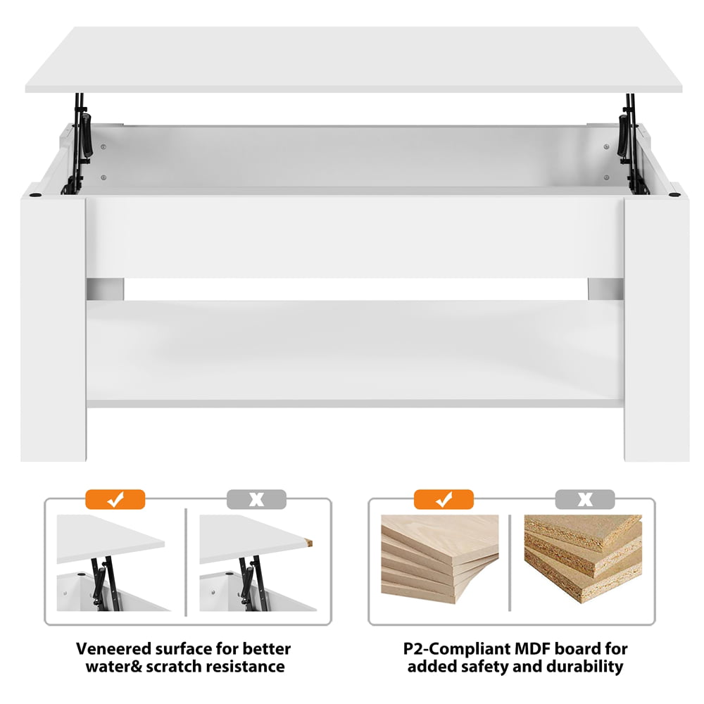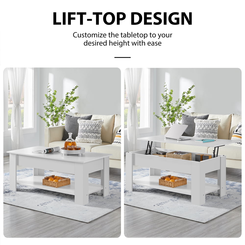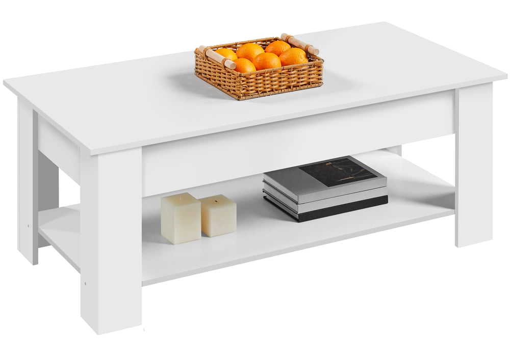 Easyfashion Modern 38.6″ Wood Lift Top Coffee Table with Lower Shelf. White