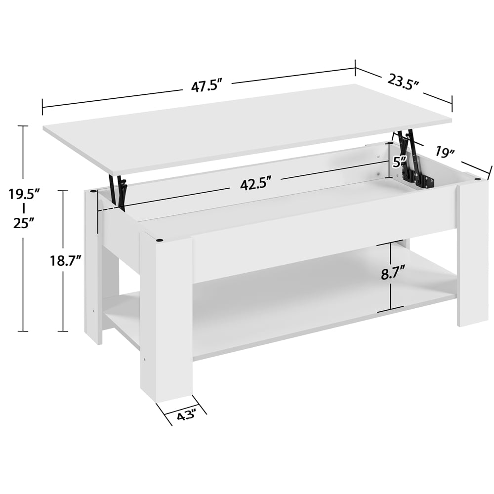 SMILE MART Modern 47.5″ Wood Lift Top Coffee Table with Lower Shelf. White