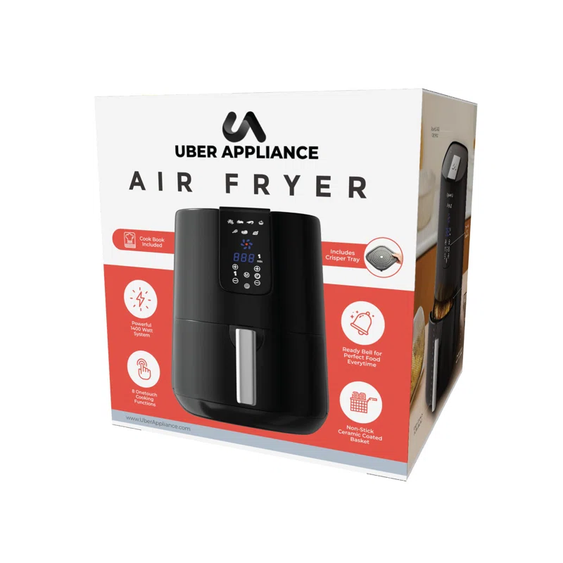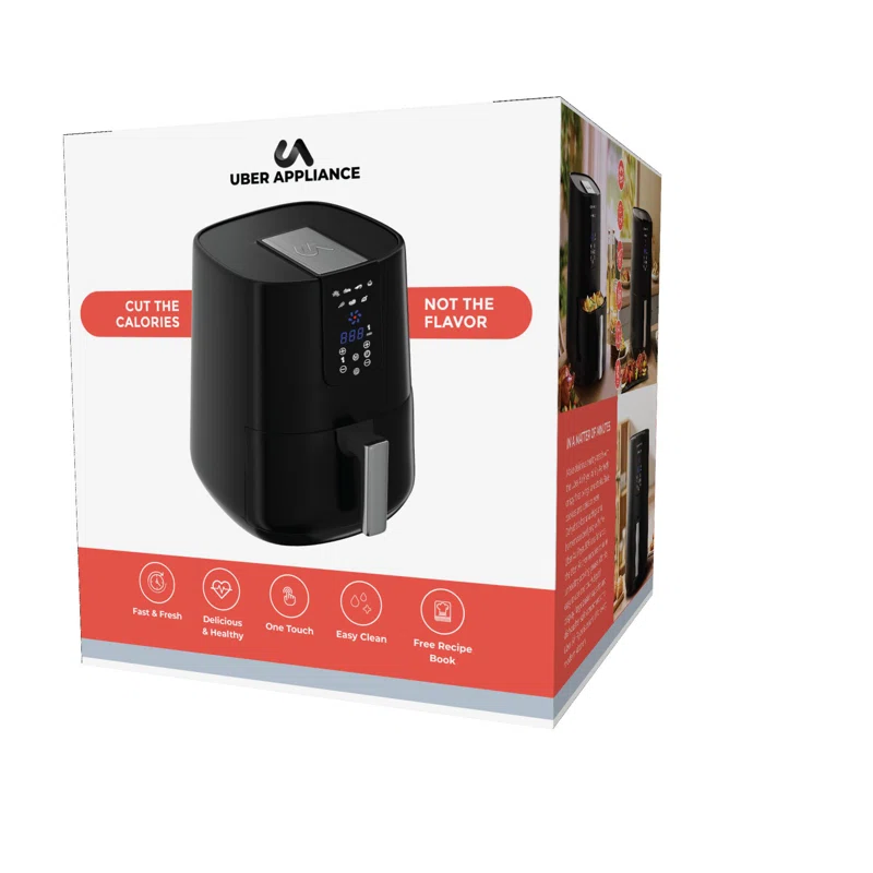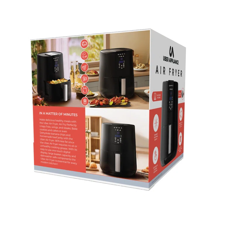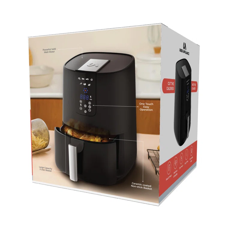 Uber Appliance Air Fryer XL - High Power Oven Kitchen Appliances-Best Seller Large Air Fryer 5 Qt Digital Display with 8 Pre-Set Functions. 5 quart. Black