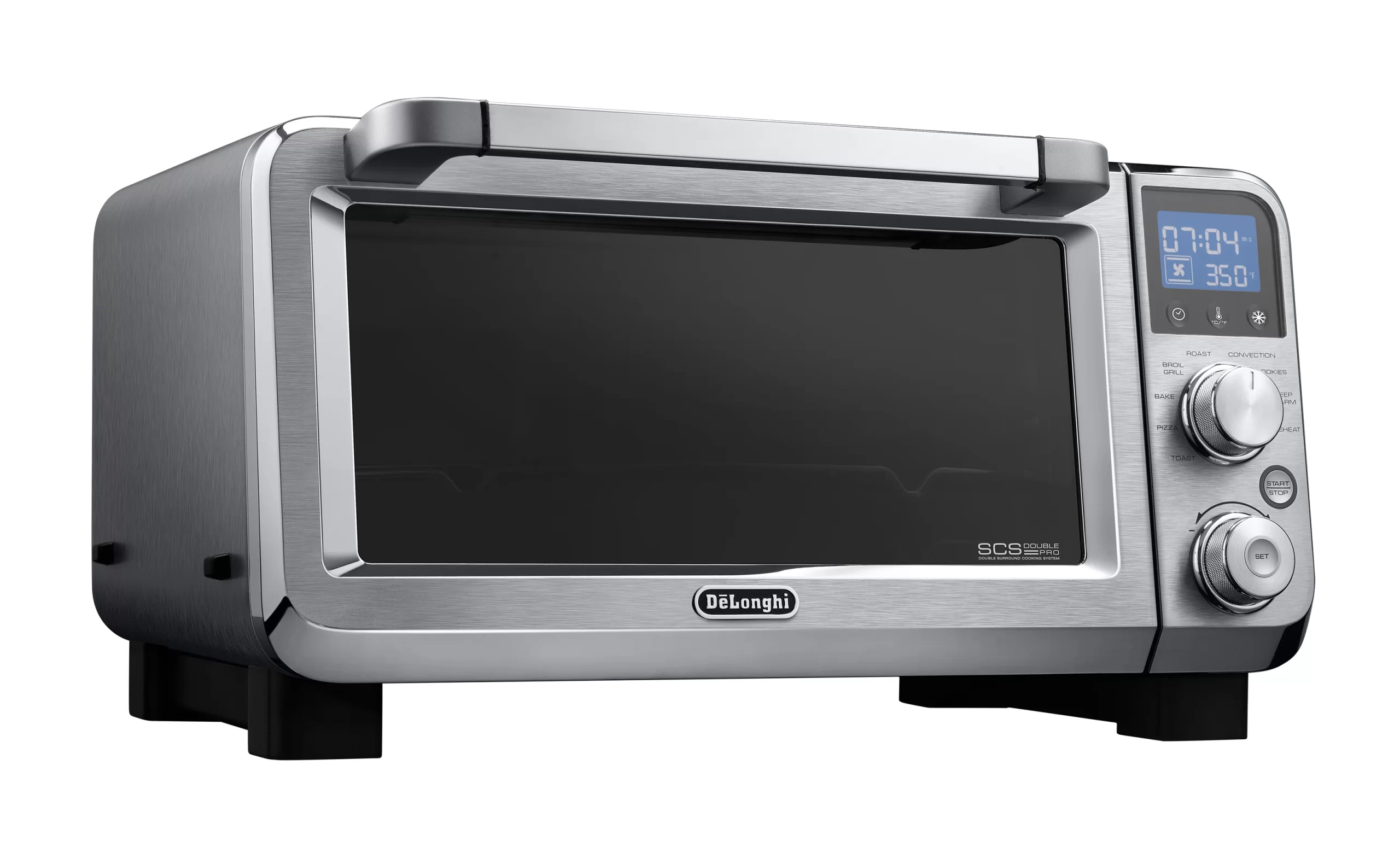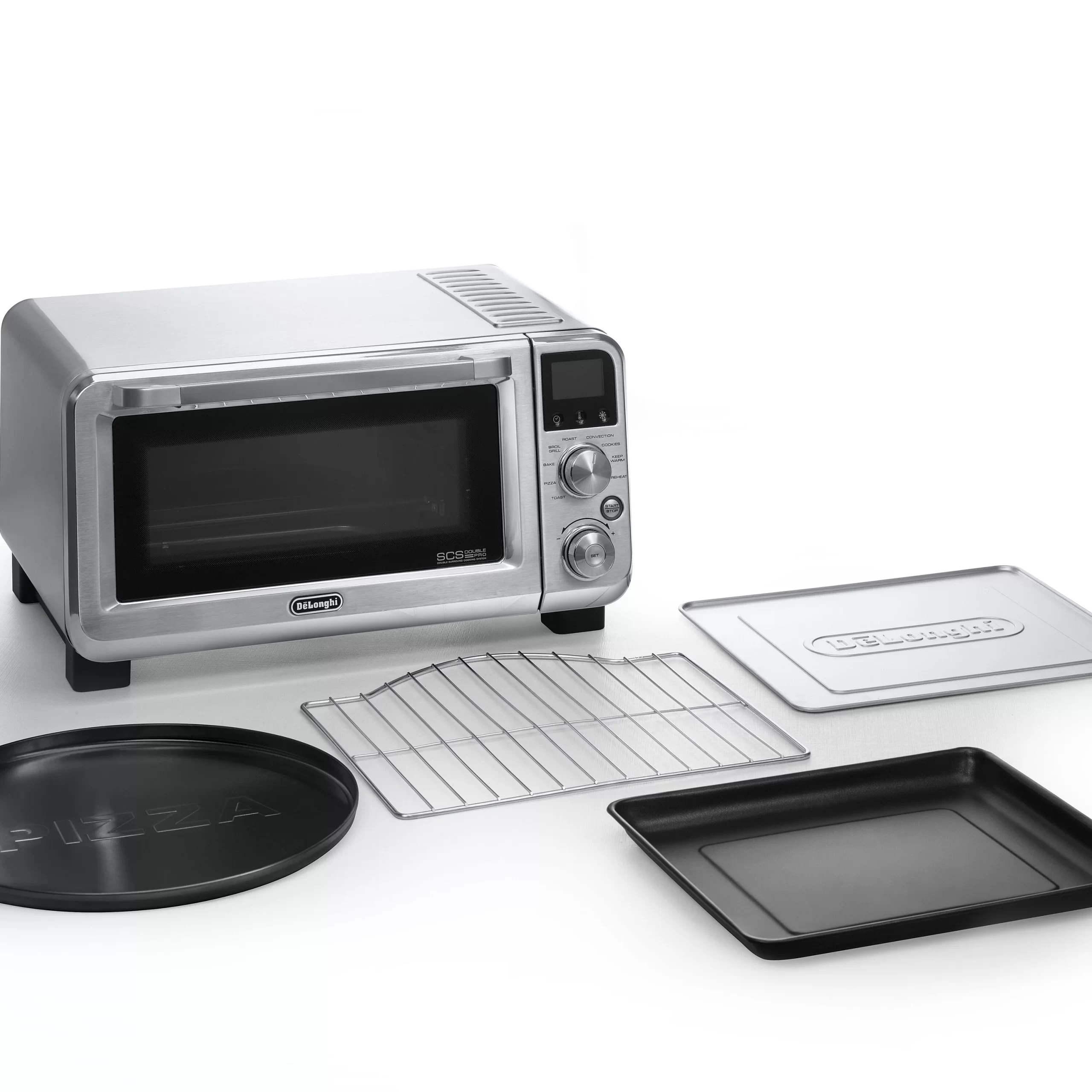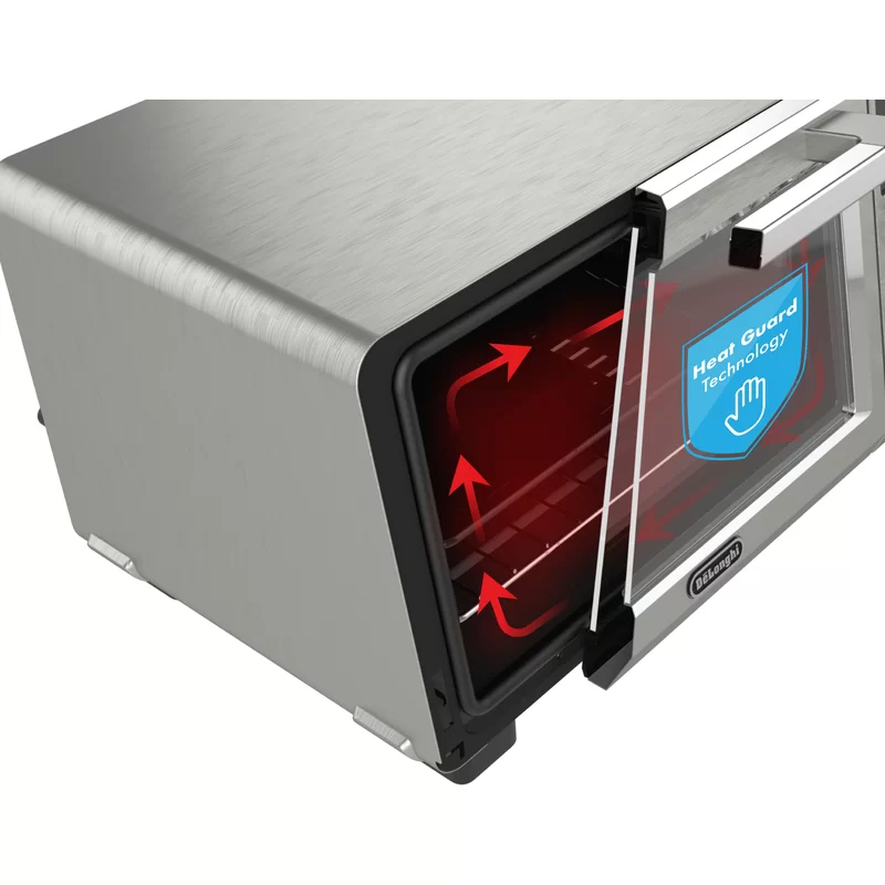 De-Longhi EO141150M Small Convection Toaster Oven For Countertop With internal light And 9 Preset Functions Including Pizza. Cookies. Roast. Broil. Bake. Easy to Use. 14L. Stainless Steel. 1800W
