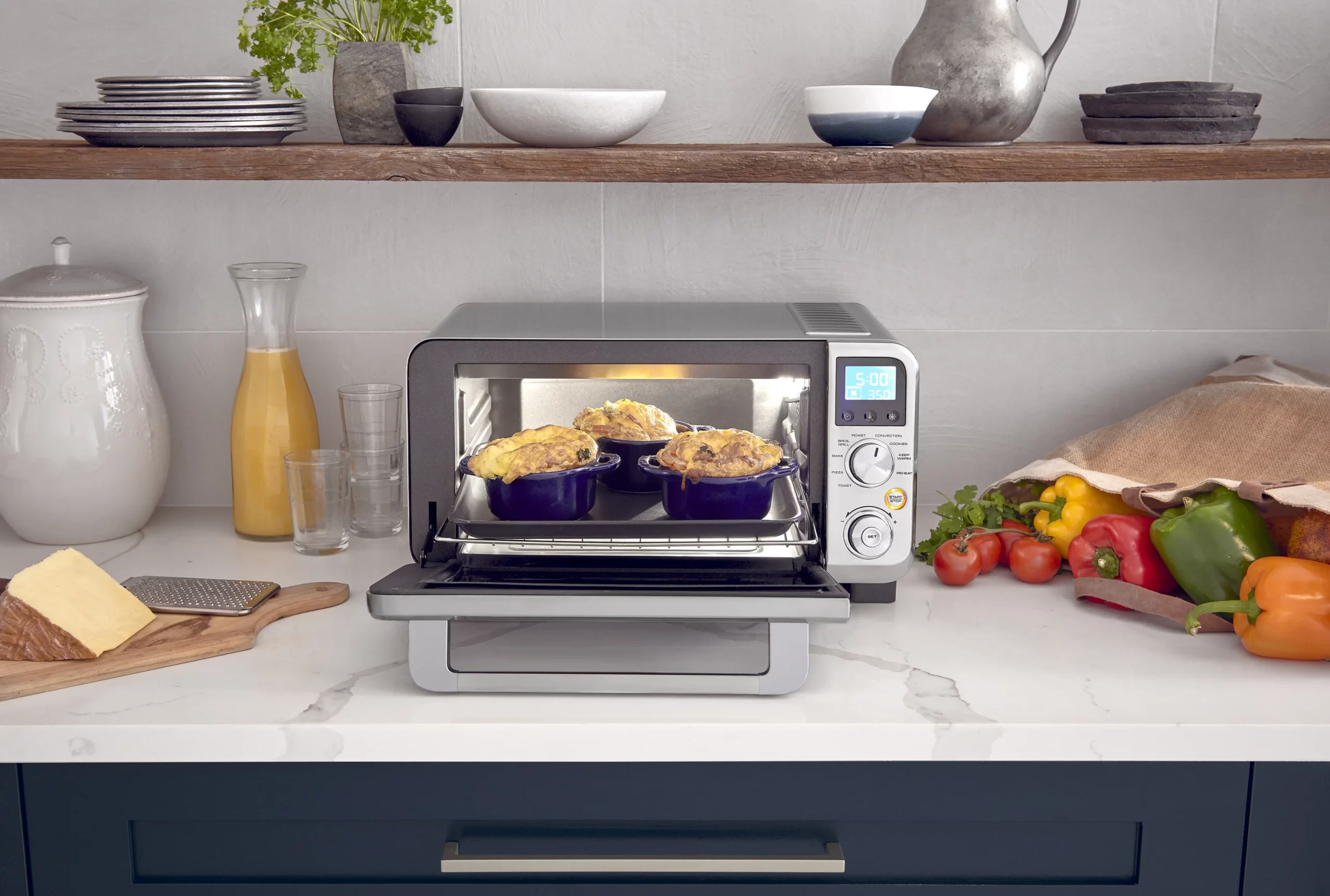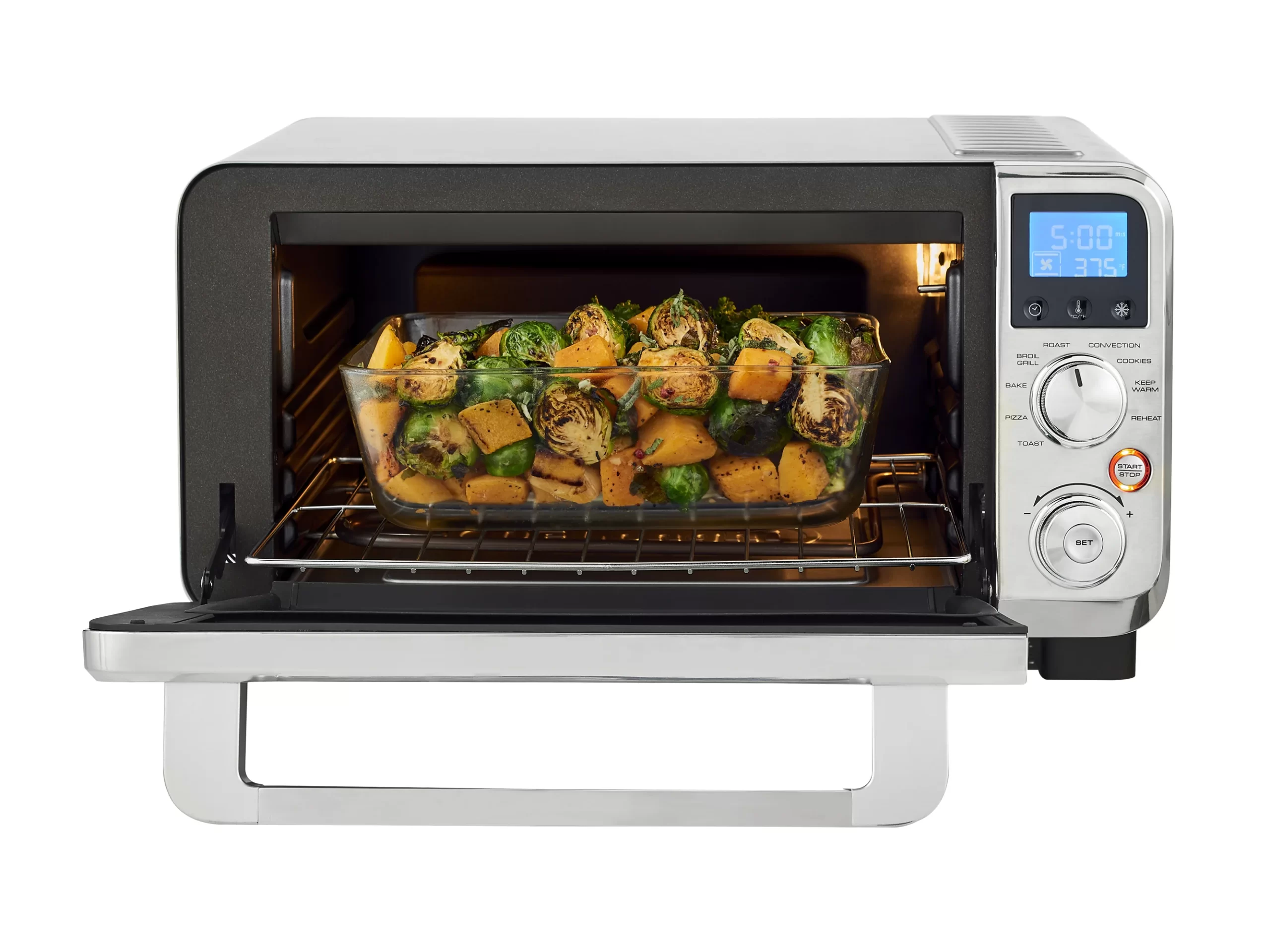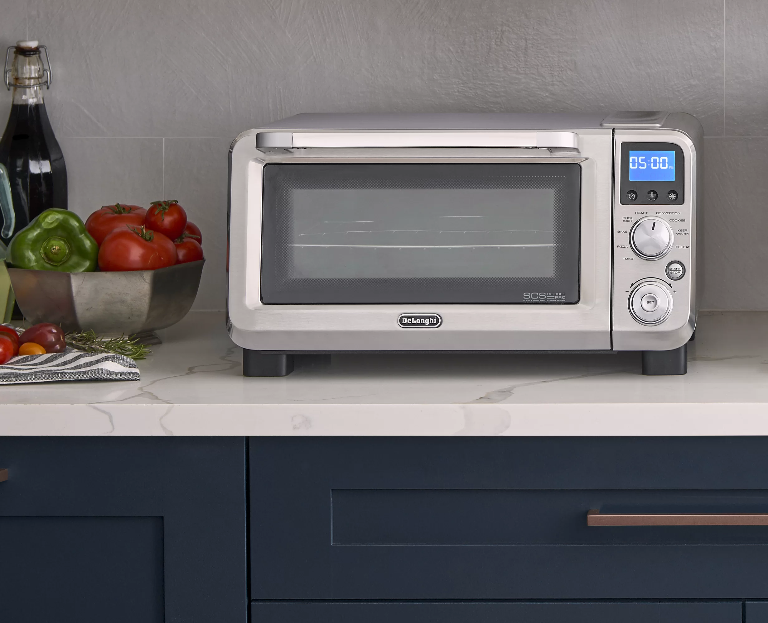 De-Longhi EO141150M Small Convection Toaster Oven For Countertop With internal light And 9 Preset Functions Including Pizza. Cookies. Roast. Broil. Bake. Easy to Use. 14L. Stainless Steel. 1800W